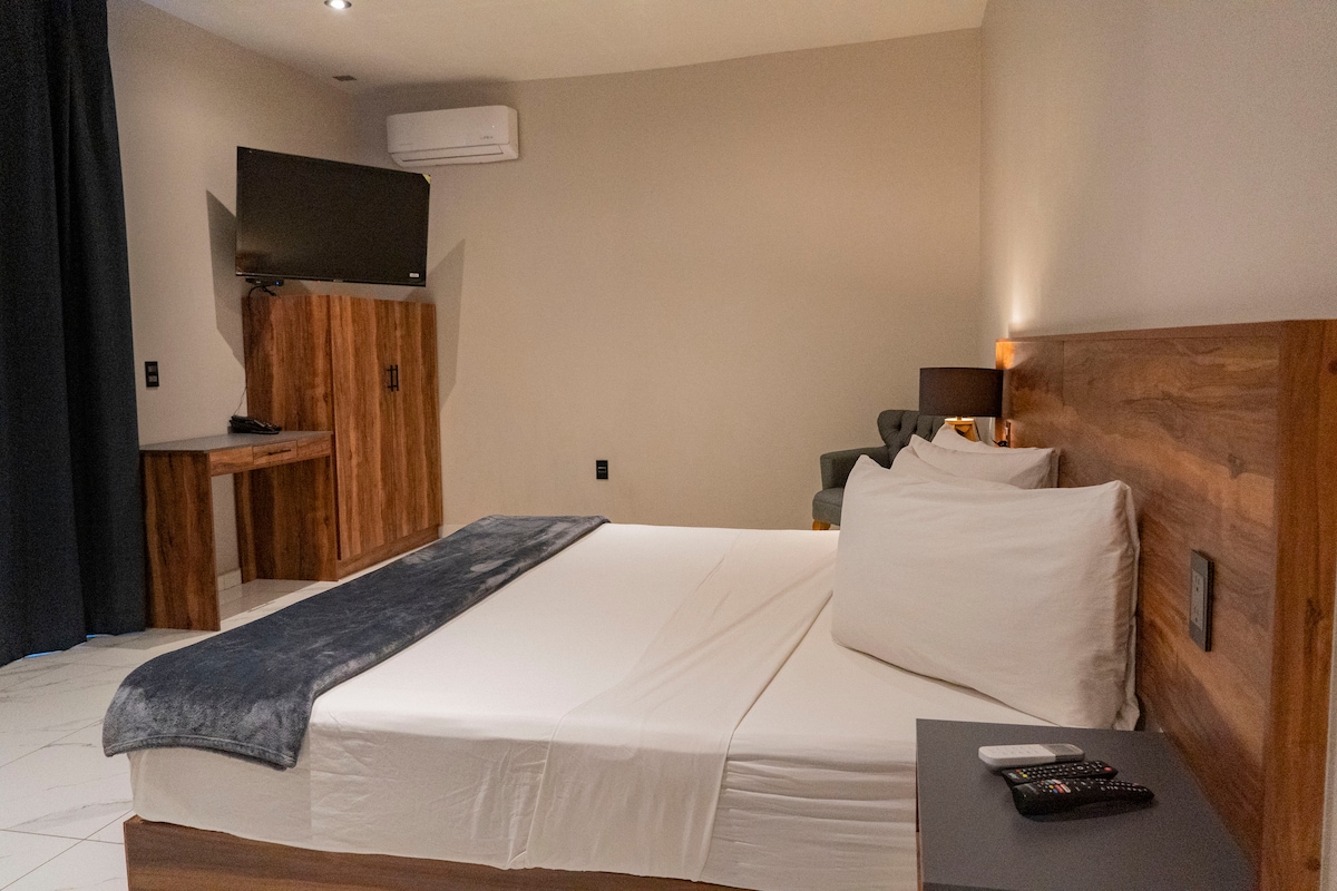 저희 스위트에는 킹사이즈 침대, 거실, 식사 공간, 완비된 간이 주방, 초고속 인터넷, 스마트 TV, 선풍기, 대형 정원, 온수 수영장, 야외 화덕이 있습니다. 오악사카 시내 중심가에서 몇 분 거리에 있는 산의 장미의 자연과 이 지역의 전형적인 다양한 식물과 조화를 이루는 천국 같은 장소에 위치하고 있으며 왕복 셔틀 서비스는 미식, 문화, 공예에 대한 환상적인 경험입니다.