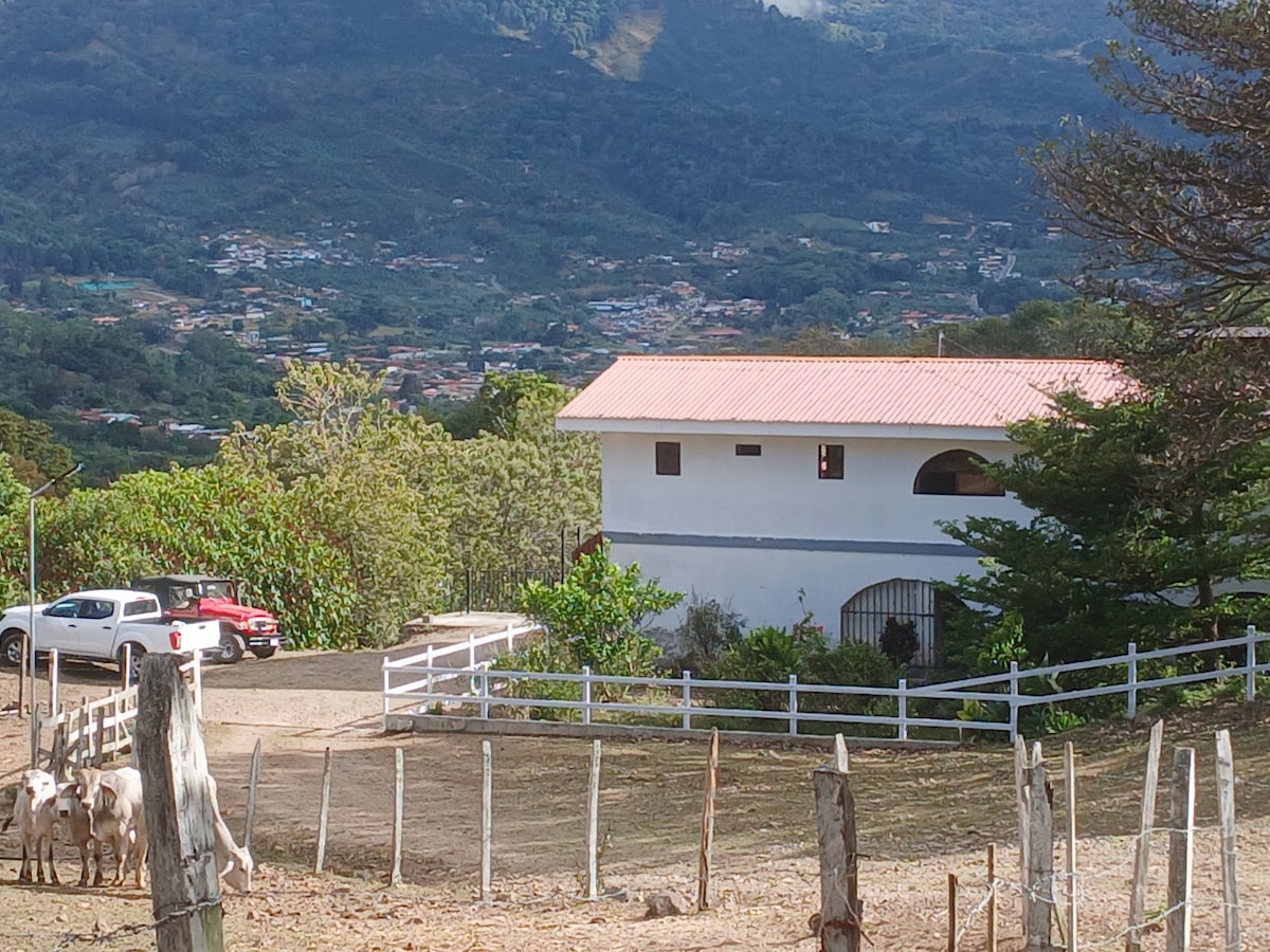 Tanager House is a cozy space next to our home with a beautiful view of the Central Valley and the mountains. We are in Tarbaca at 1600 meters above sea level. 33km from the airport, 15km from San José, 3km from the centre of Aserrí, and 15km from Acosta. Pick up from airport: $45. Another place: text me. Private bathroom, fibre optic WiFi, queen bed, garage, equipped kitchen, washer, dryer and grill.