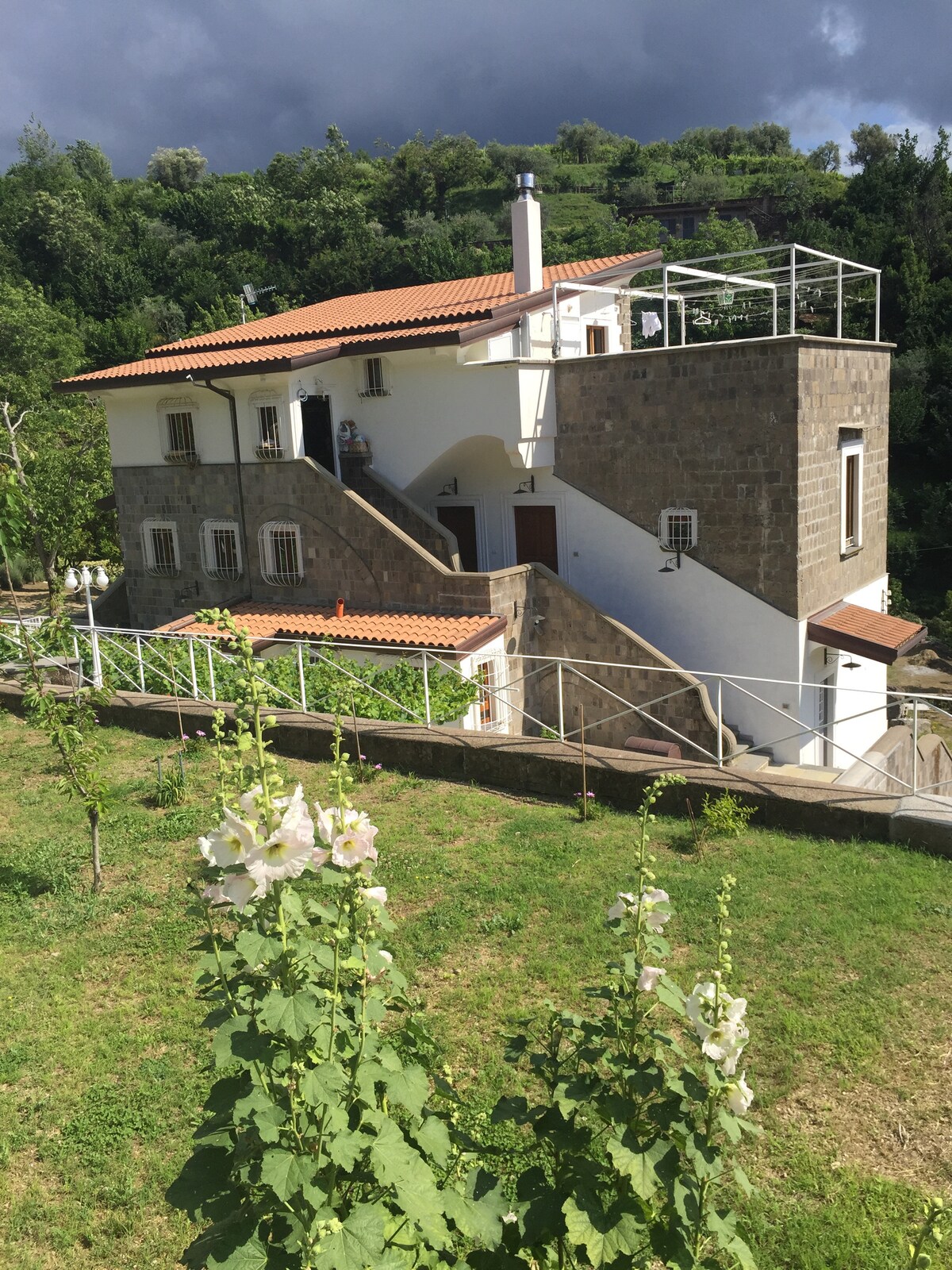 라타리 산맥에 자리 잡은 별장, 이탈리아에서 가장 상징적인 전망 중 하나인 베수비우스, 나폴리 만, 아말피 해안이 내려다보입니다. 두 개의 독특한 층 – 하나는 밝고 현대적이며, 다른 하나는 바위에 조각되어 있습니다 – 해먹과 바비큐가 있는 전용 정원과 실내 주차장. 폼페이, 소렌토, 나폴리에서 몇 분 거리에 있는 이곳은 자연, 독점적인 편안함, 재생 분위기를 찾는 분들에게 완벽한 휴양지입니다.