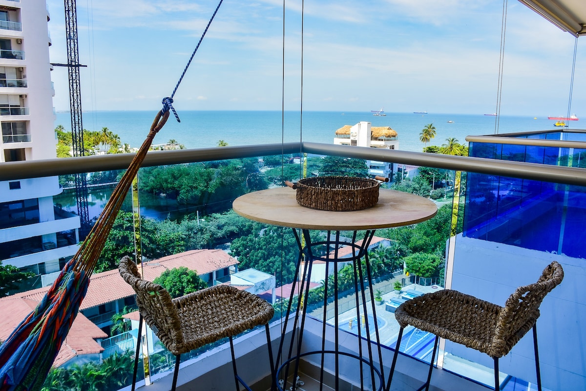 바다 전망을 감상할 수 있는 6층의 멋진 아파트. 73평방미터의 공간은 현대적이고 따뜻한 스타일로 꾸며져 있습니다. 국제 마리나 앞에 위치하고 있으며, 파르케 데 로스 노비오스에서 도보로 3분 거리에 있습니다. 산타마르타의 놀라운 일몰을 감상할 수 있는 2개의 발코니가 있습니다. 게스트는 바다 전망의 수영장 2개, 레스토랑, 바, 마사지 서비스를 포함한 고급스러운 메리어트 호텔 시설을 이용할 수 있습니다. 엘리베이터가 두 대 있습니다.