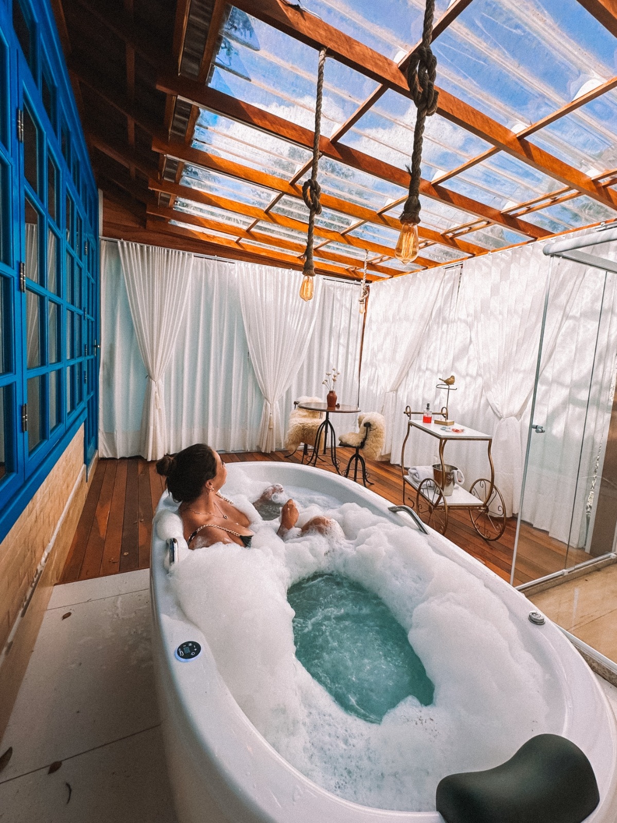 Cabana Romântica Maranta c Ofurô e Lareira externa