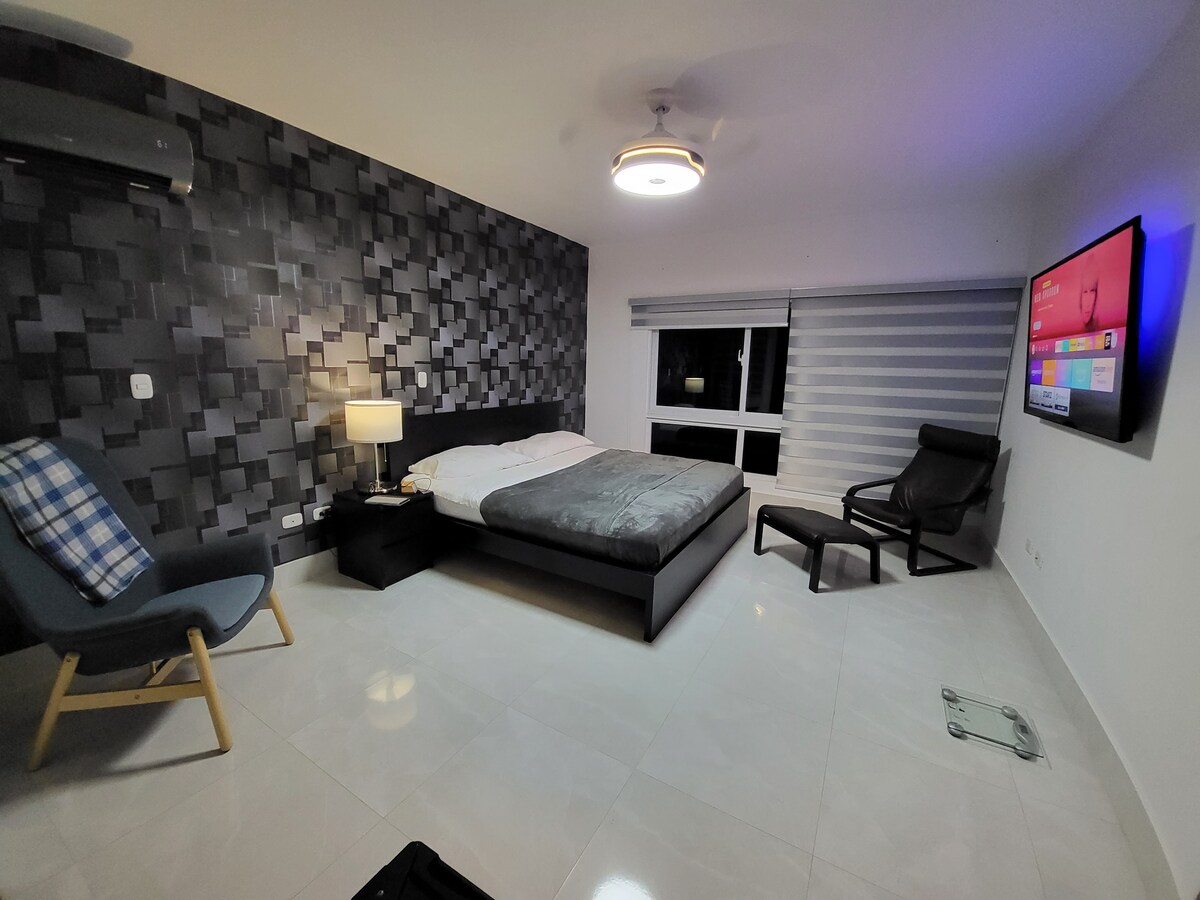 Come and enjoy this beautiful 1 Bedroom Apartment.gated complex with 24/7 security jogging track Gym small lake swimming pool fast wifi airconditioner. Hot water inverter.a balcony to relax at night 2 tv's Netflix ready, washing machine with dryer safe box coffee maker blender microwave toaster. Stationary bike workstation perfect place to work from home and be on vacation at the same time.