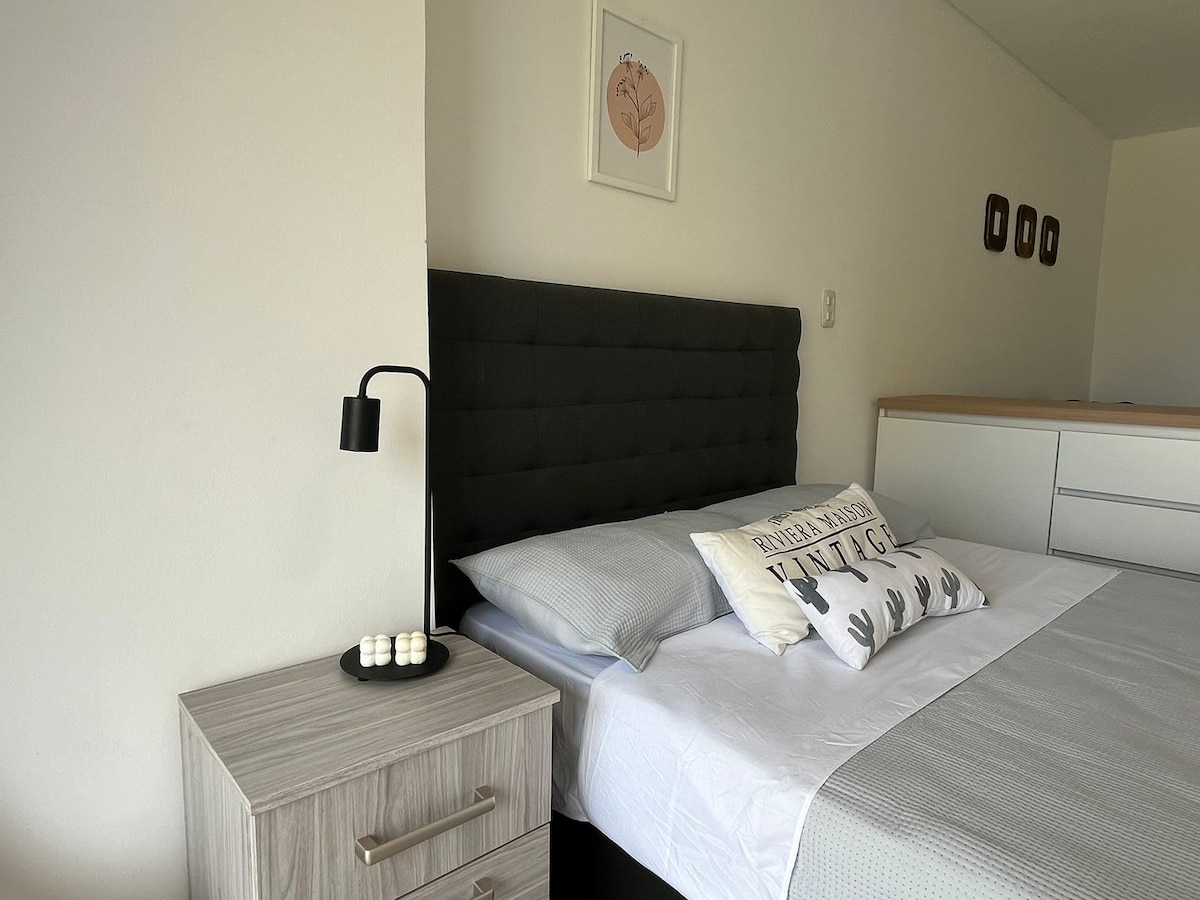 훌륭한 위치, 중심지에 있는 메인 플라자에서 몇 블록 거리에 있습니다. 전기 문이 있는 차량 1대용 차고 포함. 가구가 완비되어 있습니다. 침실 2개, 스코틀랜드식 샤워기가 있는 욕실 1개, 화장실 1개. 넓은 거실 식사 공간. 완비된 주방. 바비큐 시설이 있는 뒤쪽 정원. 세탁기 및 건조대. 스마트 TV. 포함 서비스 (전기, 수도, 천연 가스 및 광섬유 인터넷 100 메가. 침구 및 수건 세트. 에어컨 완비.