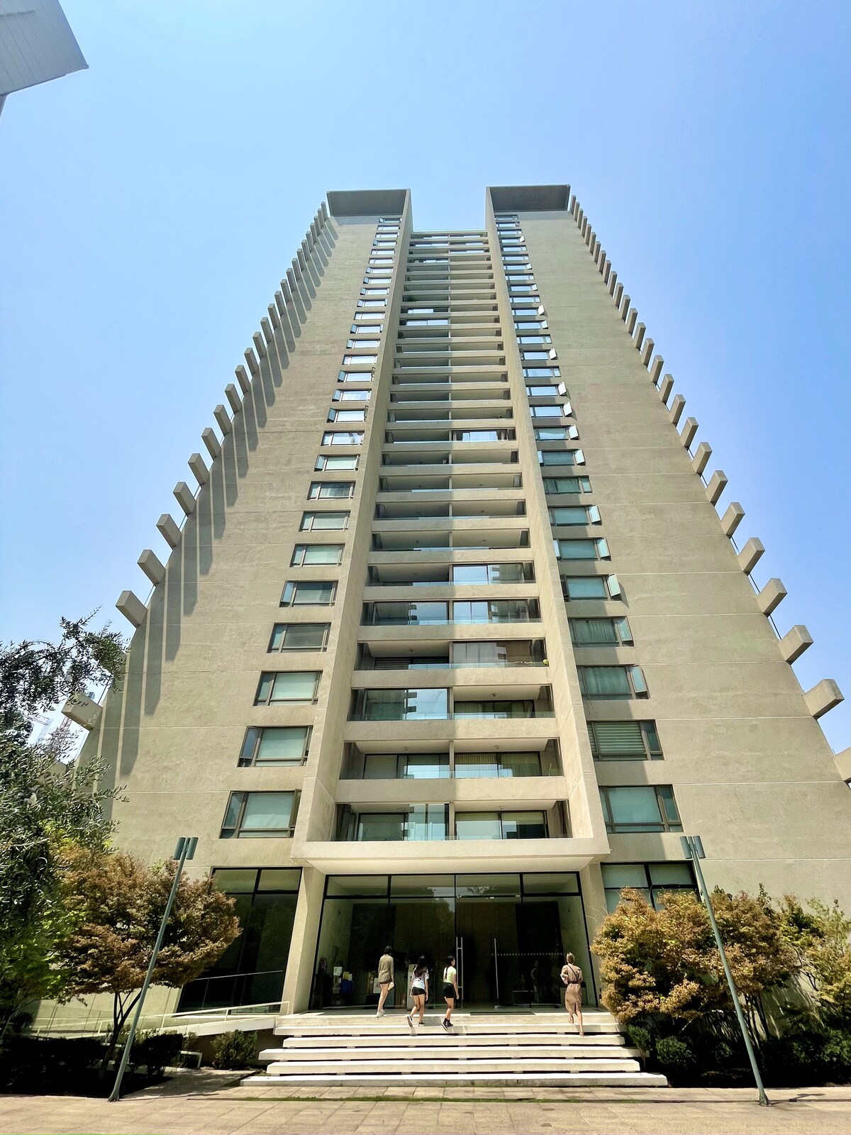 El departamento está en un noveno piso y tiene una vista privilegiada hacia el poniente, cuenta con una ubicación inmejorable en el corazón de Providencia, a pasos del centro comercial "Costanera Center", y a solo dos cuadras del Metro Los Leones. El lugar está rodeado de restaurantes, teatros, pubs, cafés, farmacias, librerías y salas de arte. Se ubica frente al Parque de las Esculturas, el que conecta con una ciclovía con el centro de Santiago a través del Parque Balmaceda y Forestal.