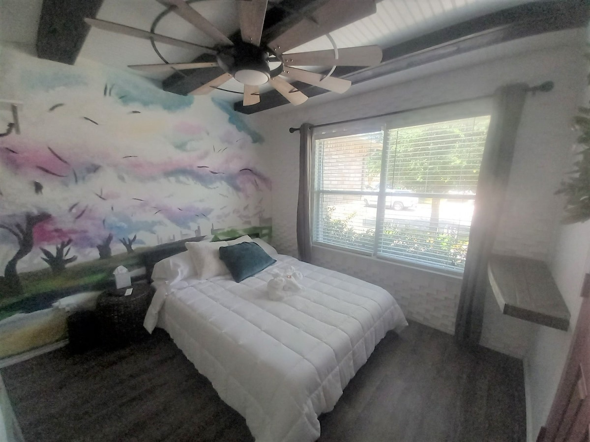대형 TV, 냉장고, 전자레인지, 최대 4명까지 편안하게 수용할 수 있는 숙소를 즐겨보세요 2. 이 숙소에는 트윈 데이베드와 바퀴 달린 침대, 퀸사이즈 침대가 모두 같은 10피트 x 14피트 방에 있습니다. 씨월드에서 12분, 식스 플래그에서 12분 거리에 있습니다. 번화한 쇼핑 지역 근처의 중심지에 위치하고 있으며 다양한 레스토랑과 공원에 빠르게 이동할 수 있습니다. 이 숙소는 듀플렉스 스타일의 저희 집에 딸린 개인 아파트입니다. 체크아웃 시간은 오전 11시입니다. 체크인 시간은 오후 3시입니다.