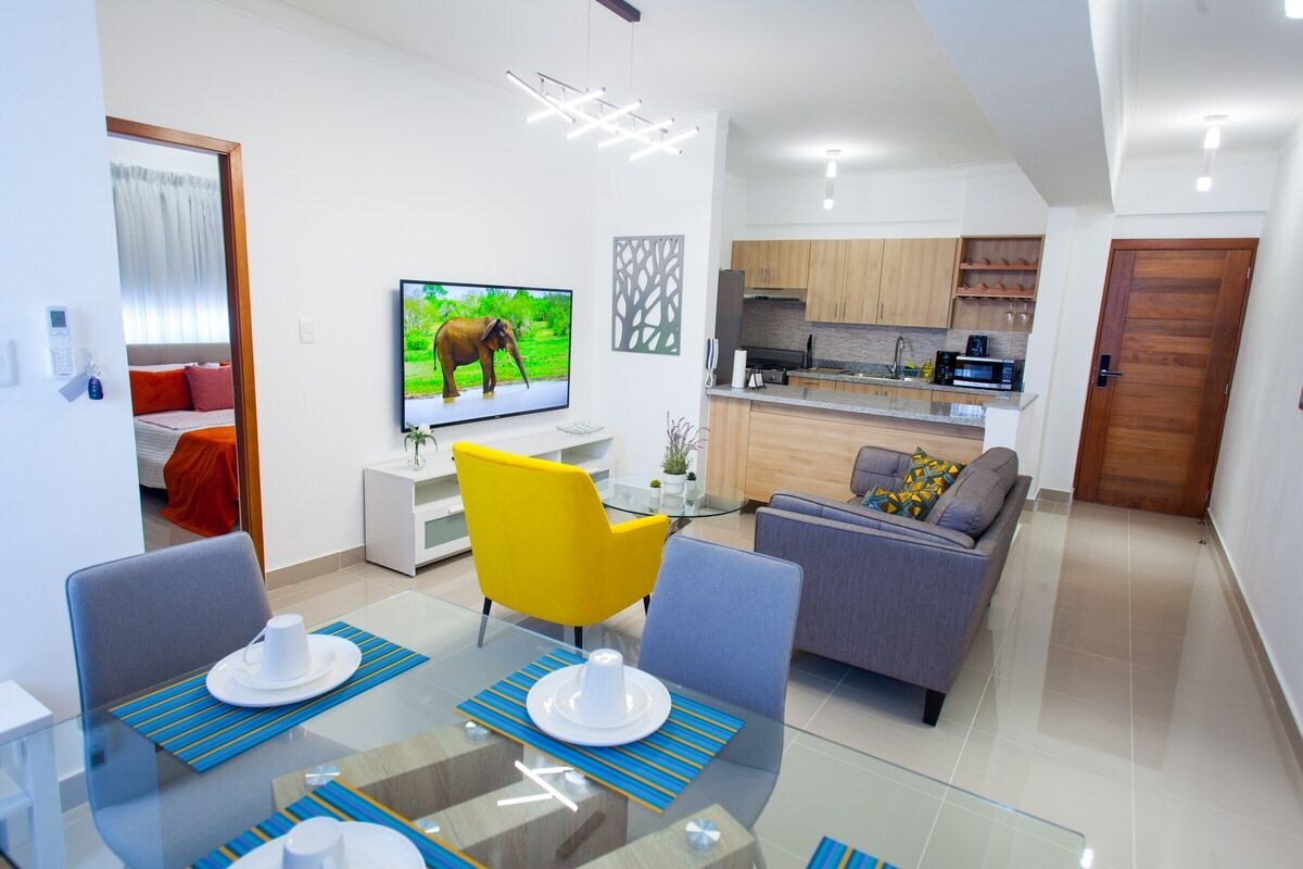 스토의 중심에 위치한 아파트입니다. Dgo. 레스토랑, 쇼핑몰, 문화 광장, 올림픽 센터, 클리닉, 성형외과 센터, 슈퍼마켓, 명문 대학교, 은행, 말레콘에서 1000미터, 지하철역에서 가깝고 국제공항에서 불과 30분 거리에 있습니다. 아메리카. 전용 욕실, 에어컨, 스마트 TV, 옷장, 전용 발코니가 있는 객실 1개 와이파이 (87Mbps) 및 LAN 케이블 직장인과 학생들에게도 이상적입니다. 마음에 드실 거예요!
