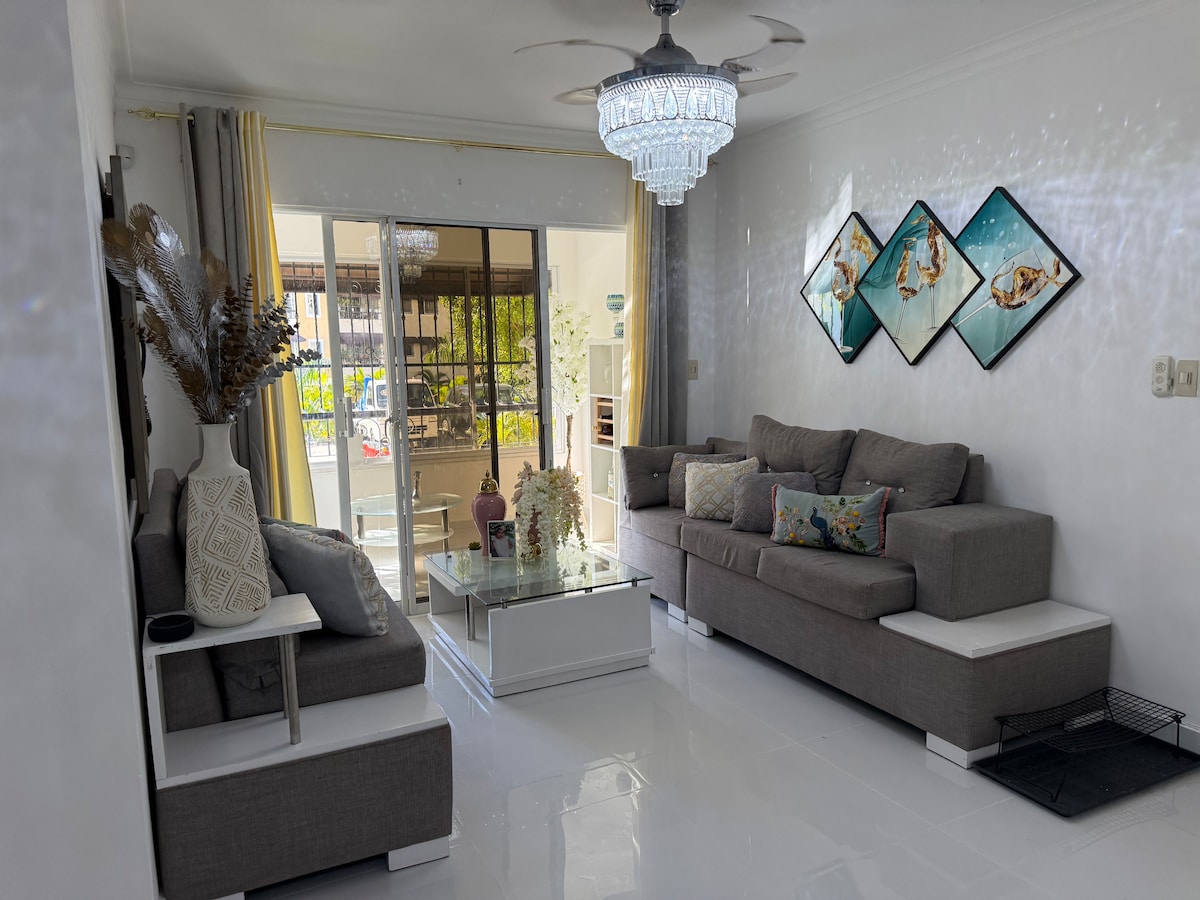 지금 예약하세요! 지하철에서 불과 5분 거리에 있는 아늑한 2BR 아파트입니다. 퀸사이즈 침대 1개, 더블 침대 1개, 접이식 소파가 있습니다. 모든 객실에서 케이블, 넷플릭스, 유튜브를 즐길 수 있는 스마트 TV를 즐겨보세요. 에어컨과 온수가 항상 제공되어 쾌적하게 머무실 수 있습니다. 스마트 도어록을 이용해 안전하게 출입하세요. 지하철로 15분 거리에 있는 콜로니얼 존과 보카치카 해변. 엘 에덴, 빌라 멜라, 산토 도밍고 한복판에 위치하고 있습니다. 완벽한 여행이 기다리고 있습니다! 저희 객실은 따뜻하고 안락합니다. 현장 집사는 연중무휴로 이용 가능합니다.