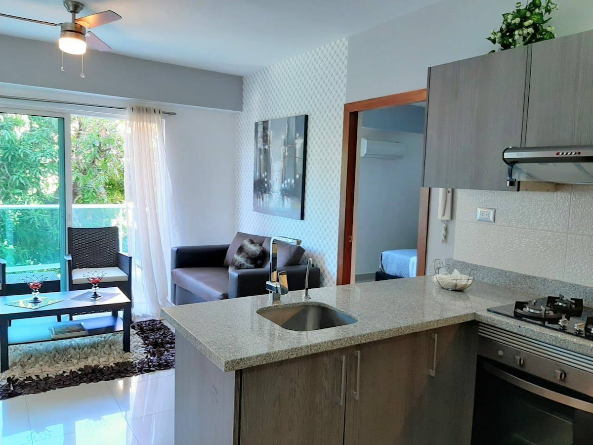 Este hermoso y confortable aparta estudio se encuentra ubicado frente a las costas del mar caribe y a 2 minutos del malecón, cuenta con todos los utensilios y electrodomésticos necesarios para tener una estadía super agradable. wifi, smarttv, cocina modular, baño amplio con agua fría y caliente, lavadora, aire acondicionado, cama Queen, balcón con vista al mar y a la ciudad, parqueo gratuito, amplia piscina; acceso rápido a tiendas, restaurantes, malls, centros de diversión, etc. ¡Los esperamos!