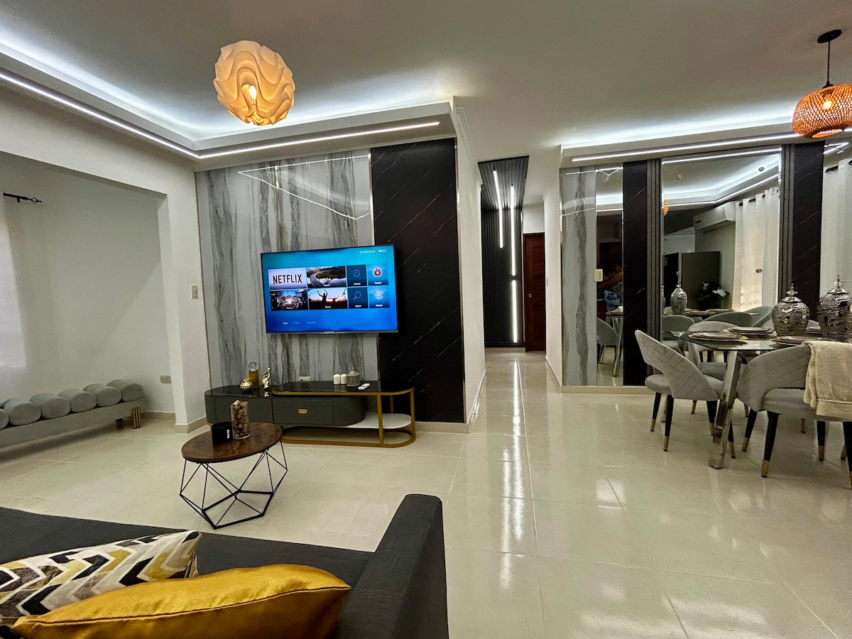 산토도밍고 시내에 위치한 아름답고 현대적인 아파트로, 모든 시설이 완비되어 있으며, AC, 스마트 TV와 200개의 채널, 초고속 Wi-Fi, 전용 커버 주차장, 헬스장이 있는 공용 공간, 의자와 바비큐가 있는 테라스, 아름다운 전망과 도보 거리 내에 있는 도시에서 필요한 모든 것을 갖추고 있습니다. 매력적이고 편안한 아파트에서 편안하게 머물러보세요. 편안한 여행이나 출장에 적합합니다.