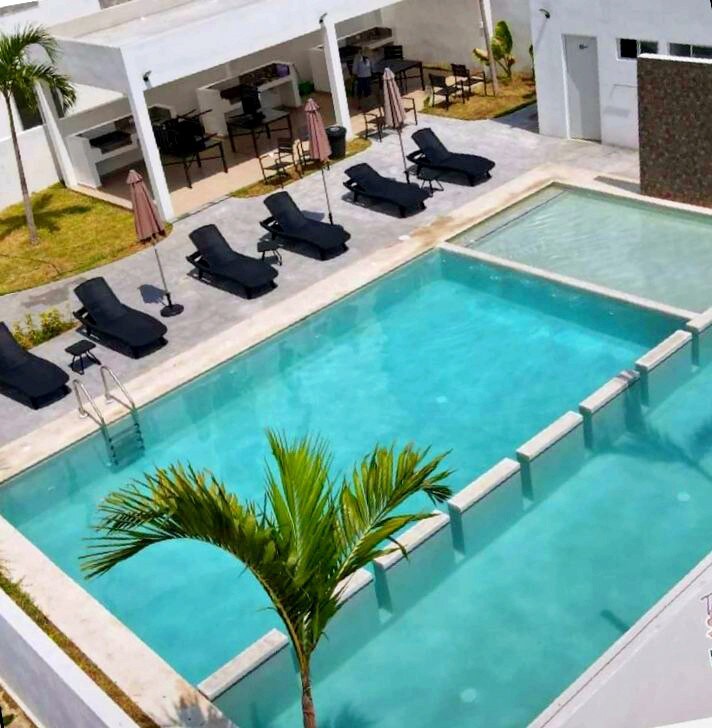 칸쿤의 파라다이스에 위치한 멋진 숙소로 자신만의 스타일을 가지고 있어 즐기고 휴식을 취할 수 있습니다. 이중 보안 부스가 있는 전용 주택으로 완비된 가구와 시설을 갖추고 있으며, 3개의 침실, 2개의 욕실, 1/2 욕실을 갖추고 있어 최대 8명까지 수용할 수 있습니다. 숙소 내 전용 수영장이 있으며 전용 수영장과 공용 수영장을 모두 이용할 수 있습니다. 그릴, 인터넷, 케이블 TV, 넷플릭스, 거실, 식당, 주방, 세탁 공간, 공용 정원, 3대의 차량을 주차할 수 있는 주차장이 있습니다.