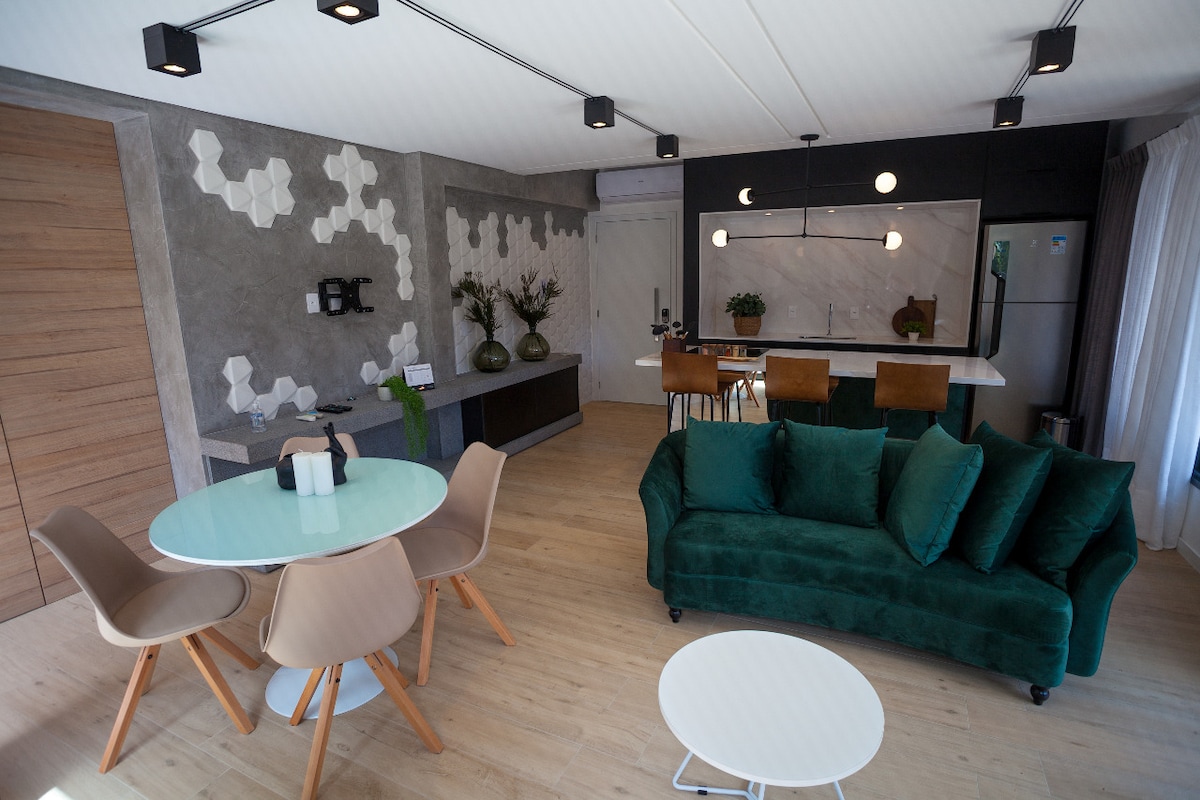 Looking for a cozy checkpoint in the heart of the city? You'll feel at home in this well-planned loft. Located in downtown Florianopolis, it's perfect for someone looking to explore the island or attend to an event nearby. Includes: - Queen bed - Complete gourmet kitchen - Washer and drier - Big table for meals and Home Office - 360 Rotational TV so you can watch from anywhere in the loft - Clean and modern bathroom - Wi-fi - Complete air conditioning