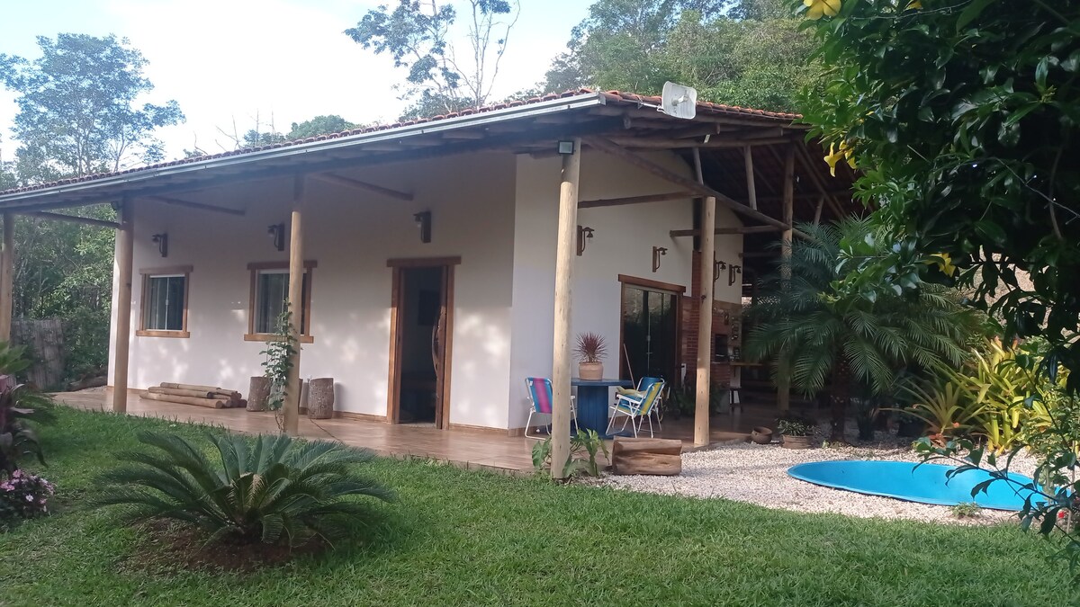 Reconecte-se a quem você mais ama neste lugar ideal para famílias. Casa e cozinha completa. Acomoda 10 pessoas em camas, oferecemos roupas de cama e banho. Cozinha Cooktop, forno elétrico, microondas, sanduicheira, liquidificador, utensílios cozinha. Fogão a lenha, área churrasco, piscina infantil. Próximo as Praias do Rio Preto, a 3km do Parque Est do Rio Preto.