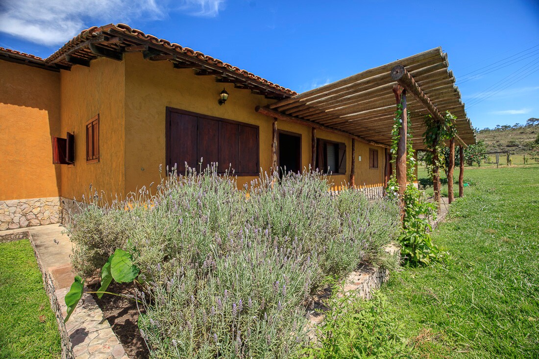 Voted the best pousada in Goiás and top 10 in Brazil! One-of-a-kind accommodation on a luxury ranch in the Chapada dos Veadeiros with breakfast included and jacuzzi bathub. We have 5 chalés. Located 15km from the center of Alto Paraíso on 92,000m2 of native Cerrado land with breathtaking views. Our chalets have air conditioning, 400 thread count sheets, Natura amenities, full kitchen, fire pit, 150mbps WiFi and 40" Smart TV. Try feeding our llamas or a sunset horseback ride! Kids welcome.