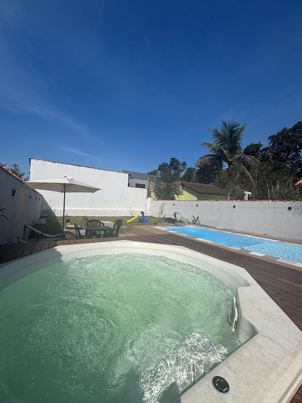 30미터 전면이 있는 집! 리비에라 데 사우 로레소 해변에서 5분, 이타구아레 해변에서 10분! 산투아리 서프! *( 조용히 걸으면서 ) 이 숙소에는 큰 방 1개(6명) 미국식 주방이 있습니다! 큰 욕실, 넓은 뒷마당, 호스트와 잠재 고객이 사용하는 공간, 뒷마당 바닥에 있는 두 개의 별채를 임대할 수 있습니다! 이 동네는 주택가로 출입구에 강력한 순찰이 있으며 카메라로 관리되고 있습니다!