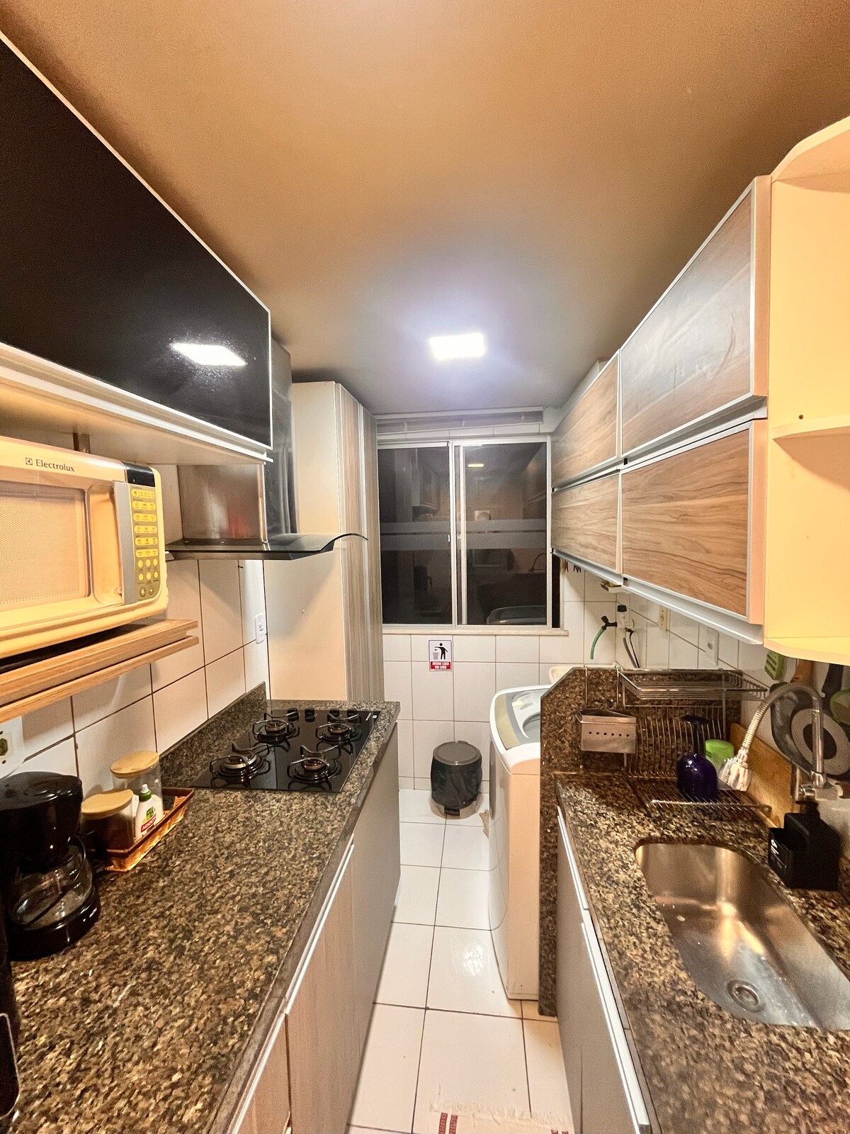 Suíte aconchegante, exclusiva e silenciosa, ideal para descanso e lazer. O Check in pode ser feito na madrugada ou na manhã, desde que esteja com o horário livre (Inclui Adiconal de entrada pela manhã) Cozinha completa equipada com fogão, frigobar, airfryer, e mais. Localização privilegiada: A apenas 6 min do aeroporto e 7 min da rodoviária Ao lado de restaurante Próxima ao Mix Mateus (atacado) e perto de varejos