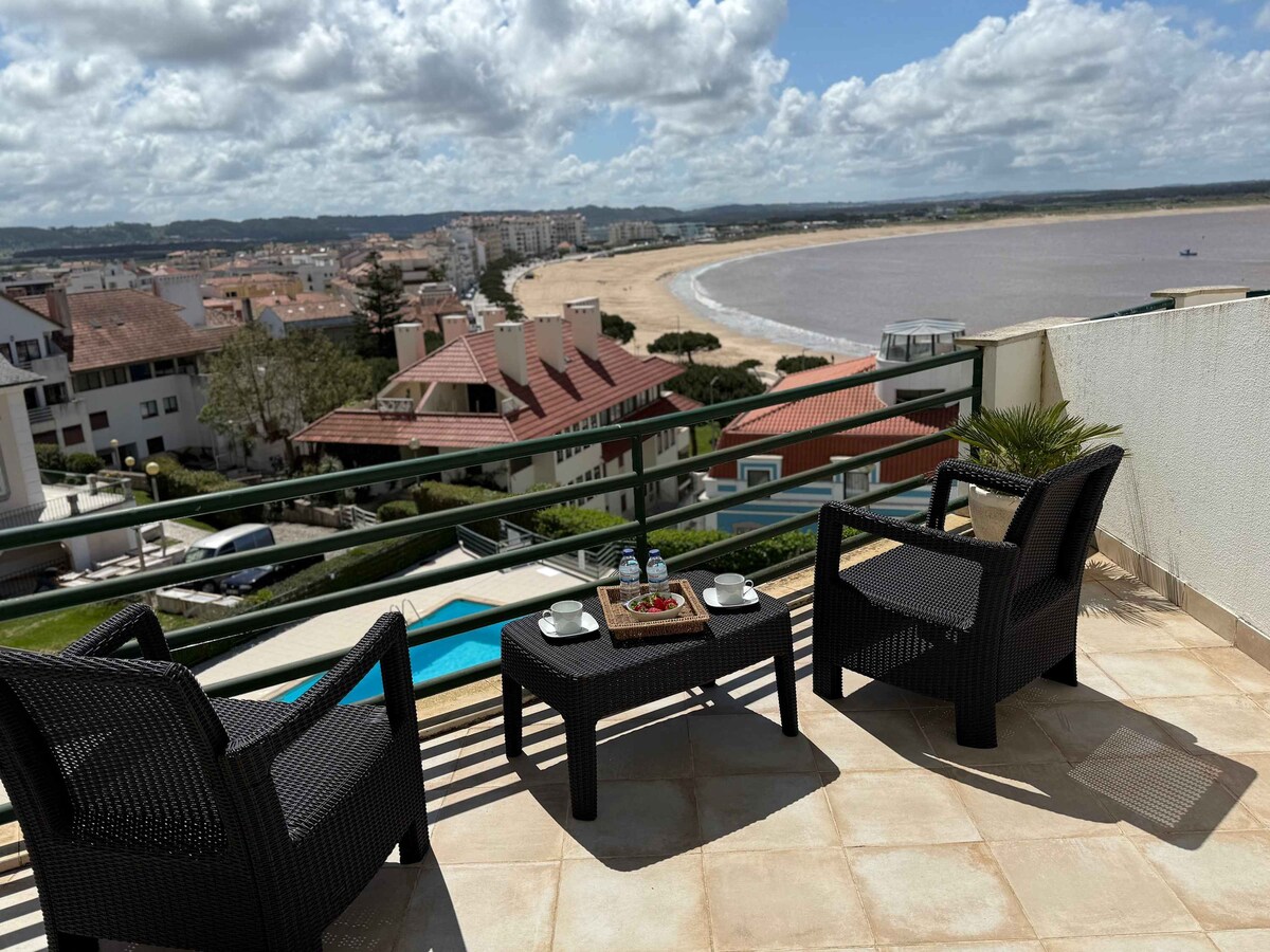 새롭게 리모델링한 현대적인 해안 스타일의 침실 2개 아파트로 대서양과 그림 같은 나자레 마을과 언덕의 멋진 전망을 감상할 수 있으며, 비그 웨이브 전망대와 나자레 마을과 해변에서 가까운 거리에 있는 시티오에 위치해 있습니다. 커피를 마시며 일출을 감상하거나 발코니에서 와인 한 잔과 함께 일몰을 감상하는 등 주변 환경에 매료될 것입니다. 이 아파트는 휴가를 보내는 커플과 가족, 원격 근무자, 장기 숙박에 적합합니다.