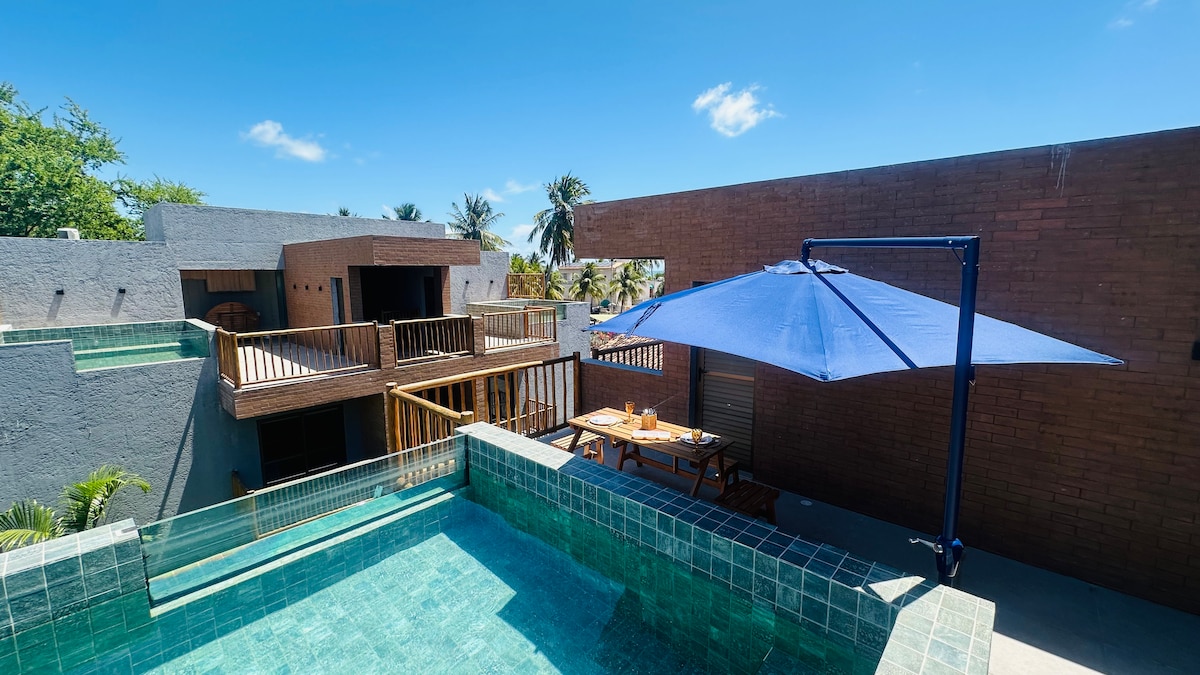 타투아무냐 바다와 수제우 신전이 있는 강 사이에 위치한 넓고 아늑한 해변 숙소. 해변에서 불과 200m 거리에 위치한 이 숙소는 TV, 에어컨, 정원과 멋진 수영장을 마주보는 전용 발코니가 있는 2개의 스위트를 갖추고 있습니다. 넓은 거실은 완비된 미국식 주방과 연결되어 있습니다. 야외 공간에는 수영장을 마주보는 그물이 있는 넓은 베란다와 고메 공간이 있습니다. 체크인 및 체크아웃 시간은 항상 유연합니다(가능한 경우).