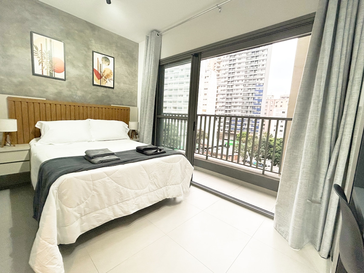 콘솔라상 한복판에 위치해 있어 매력적인 카페, 상징적인 건물(COPAN에서 3분 거리), 박물관, 나무가 늘어선 거리 등 모든 것에서 몇 걸음 거리에 있습니다. 지하철과 문화 센터에 쉽게 접근할 수 있는 상파울루의 최고를 즐기세요. 저희 스튜디오는 실용성과 매력을 제공합니다. 도시를 둘러보고 헬스장, 공동 작업 공간, 정원, 바비큐, 심지어 전용 영화관과 같은 놀라운 공용 공간을 갖춘 편안한 휴양지로 돌아올 수 있는 이상적인 장소입니다. 모두 휴식을 취하고 즐길 수 있도록 설계되었습니다!