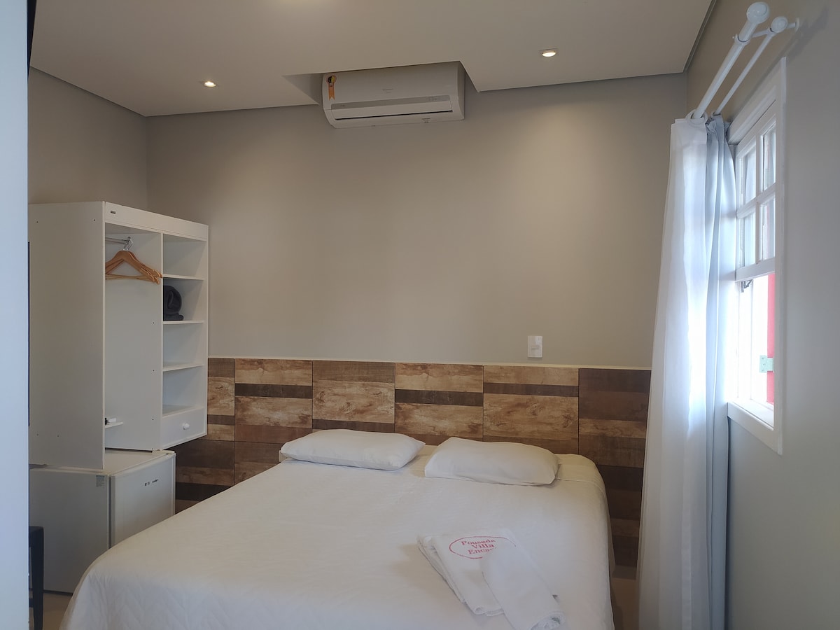 Guesthouse located in the quietest and safest neighborhood of the city. A few steps from Maitinga/Enseada Beach, with everything close by: supermarket, bakery, pharmacy, Burger King, local shops. Our guesthouse features rustic décor inspired by the Santorini Islands style, creating a cozy and relaxing atmosphere. ► Free parking ► Newly renovated private suites ► Air conditioning ► Smart LCD TV ► Minibar ► Ceiling fan ► Wi-Fi ► Bed linen ► Bath and face towels ▪️ Well-equipped shared kitchen