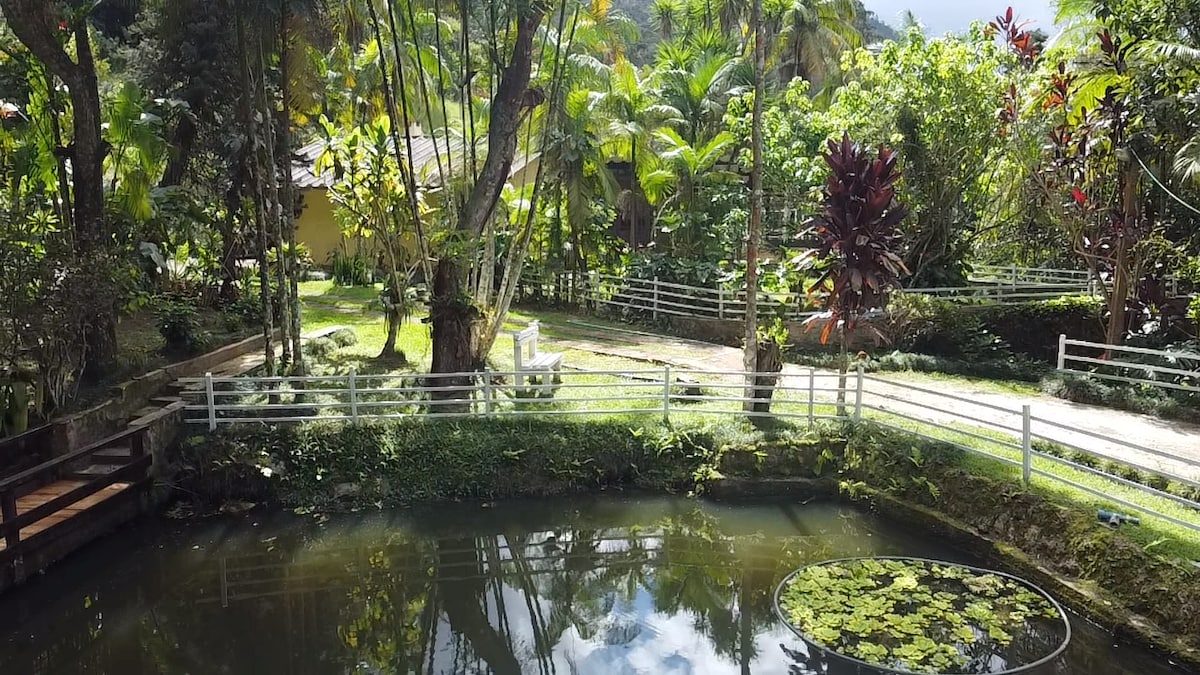 알레름 파라이바 - MG의 리우데자네이루에서 가까운 작은 천국. 미라벨라 지역에는 숙소 전체를 공급하는 생수원이 있으며 (수돗물에서 물을 마실 수 있습니다❤️), 30여 종의 과일을 즐길 수 있는 풍부한 과수원, 난초가 눈에 띄는 아름다운 정원 (항상 아름답게 꾸며져 있습니다), 닭장, 말, 숲속 공간이 있습니다. 콰티스, 타마린, 마리타카, 터캔 등을 돌리고 이동하는 방문객은 말할 것도 없습니다.