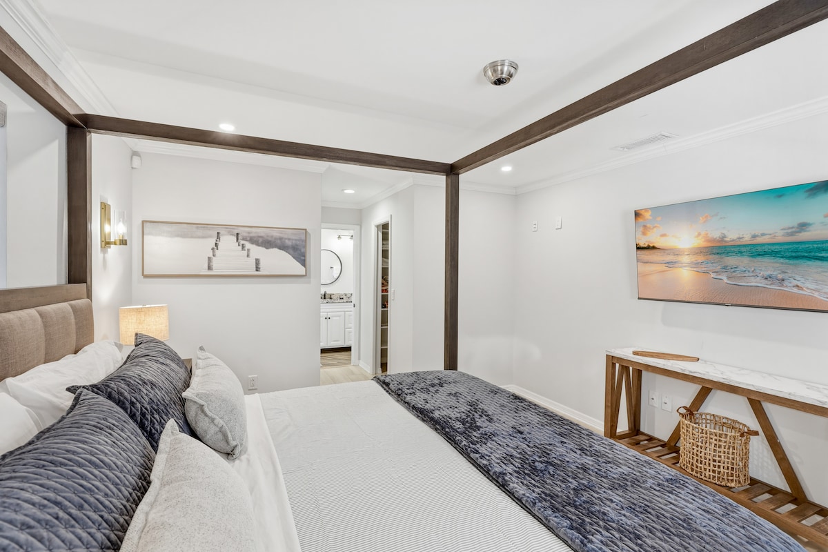 전용 뒷마당이 있는 3인용 킹 베드룸 스위트에는 해변에 필요한 모든 것이 있습니다! 넷플릭스, HBO 맥스, 디즈니+, 아마존, 주차 공간 1개, 간이 주방, 세탁 등이 포함되어 있습니다. 마트, 약국, 훌륭한 식당, 에비의 미니 골프 및 드라이빙 레인지 등이 1마일 이내에 있습니다. 비 리지 출구 207번 출구에 위치하고 있으며 시에스타 빌리지 및 해변, 세인트 아만즈 서클 쇼핑, 리도 해변, 사라소타 시내, 모에 아쿠아리움, 카약 맹그로브, 빅 캣 하비타트, 스카이 존, 렌탈 보트, UTC 몰 등!