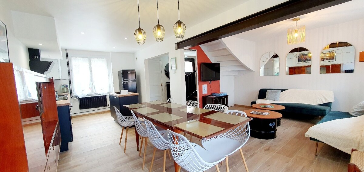 "Au Gobelet de Coëffort" Bienvenue dans notre maison-appartement de 135 m² proche de la gare nord ! Venez passer un moment de convivialité en famille ou entre amis autour du Babyfoot, du bar à Cocktail ou du Jukebox. La grande cuisine lumineuse et le spacieux salon permettent de jolis moments de partage. Notre logement s'adapte parfaitement à vos moments de travail entre collègues : Wifi, RJ45, proche gare (10 mins à pied), 3 chambres avec SDB et WC privatifs, terrasse...