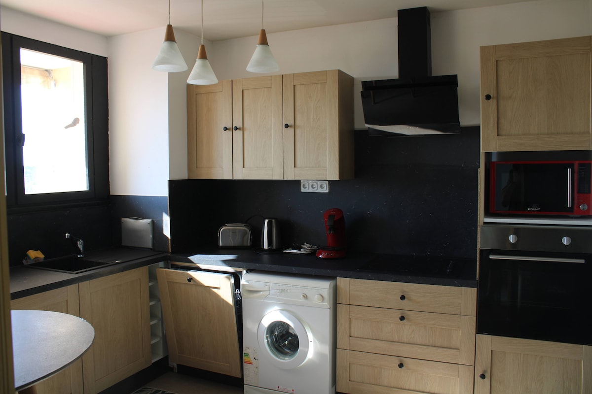Appartement spacieux de 55m2 entièrement refait à neuf, situé à 5 minutes à pied de la gare et 10 minutes du centre ville. Classé 2 étoiles. Il est situé dans une résidence tranquille au 3ème étage, sans ascenseur. Il est composé d'un grand salon, d'une cuisine indépendante équipée, d'une grande chambre avec du rangement et d'une salle de bain.L'appartement est équipé de la fibre Haut débit. NE CONVIENT PAS POUR FAIRE LA FÊTE.