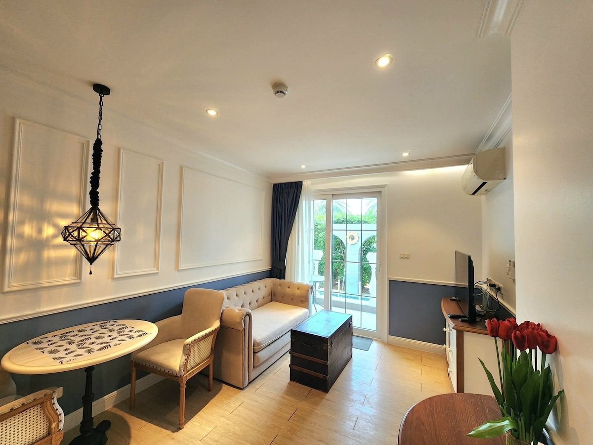 ที่พักสุดหรู ห้องขนาดใหญ่ 120 ตารางเมตร 2 ห้องนอน 2 ห้องน้ำ ติดชายหาดจอมเทียน ห้องชั้น 1 ติดสระว่ายน้ำ มีจากุชชี่ในตัวบรรยากาศดี มีความเป็นส่วนตัว พร้อมส่วนกลางแบบจัดเต็ม เช่น สระออนเซ็น ห้องเล่นเกมส์ สนามเด็กเล่น เป็นต้น มีร้านอาหารติดทะเลบริเวณภายในที่พัก เหมาะแก่ก่รท่องเที่ยวและการพักผ่อนเป็นอย่างมาก
