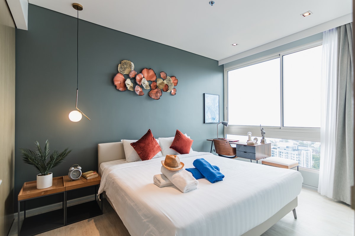 🏖 A 2-bedroom, 2 Bathrooms condominium located on the 10th floor at The Luxurious Veranda Residence Pattaya 🏖 Highlights - Modern and unique interior. - Spacious living room with a big Sofa-Bed. - High-end facilities on site. - Infinity Pool right in front of Na Jomtien beach. - High-rated restaurants for your convenience. - Free towels & toiletries, coffee & tea. - Free Wi-Fi - Free cleaning during stay - Extra services are available.