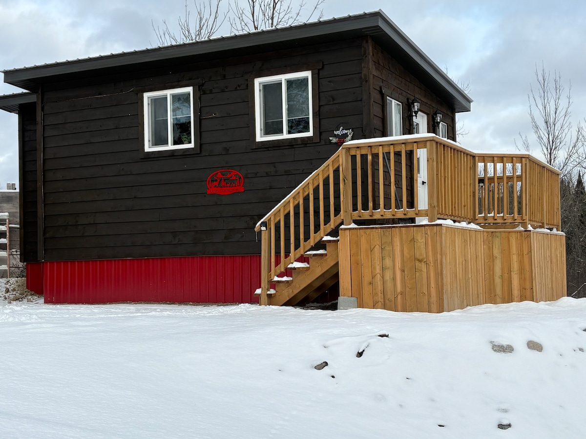 A mix between modern and country home ideal for single or couples as there are 2 beds and 2 baths. The large 24x14 master bedroom has a king size bed full ensuite c/w a beautiful relaxing Jacuzzi bathtub for two . The mainfloor bedroom 16x9 has a queen bed c/w electric fire place Located 3 km off of the highway in a sought after neighborhood .5 min or less drive to almost everything you need . And only 15 min to train station for the tour train. Note that it is snowmobile in, out . Not ski