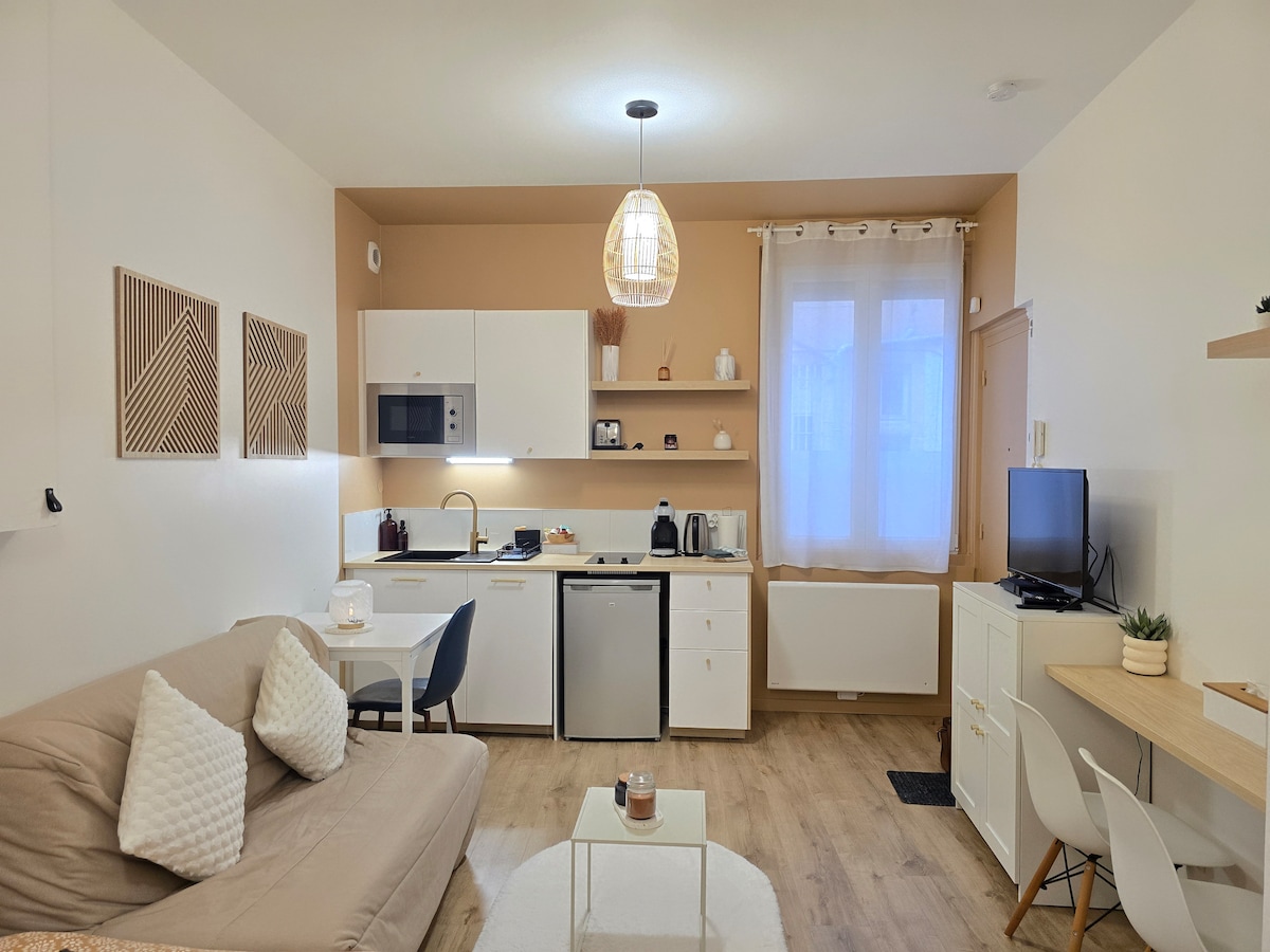 Nous avons entièrement rénové notre appartement en plein centre ville pour en faire un espace chaleureux et agréable à vivre. Tout est pensé pour votre confort : un salon accueillant, une cuisine équipée, une chambre avec une literie confortable et une salle de bain moderne. Vous y trouverez tout le nécessaire pour un séjour sans souci : WiFi, machine à laver, sèche-cheveux… Que vous soyez en voyage ou en déplacement, nous serons ravis de vous accueillir !
