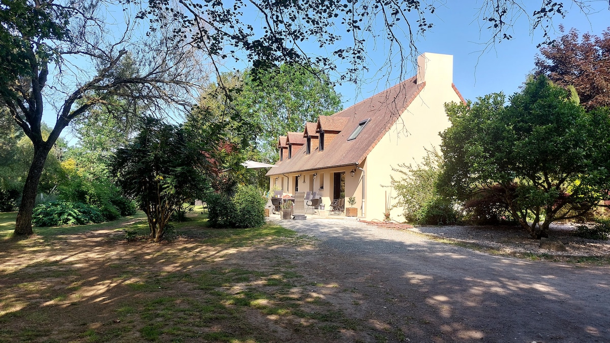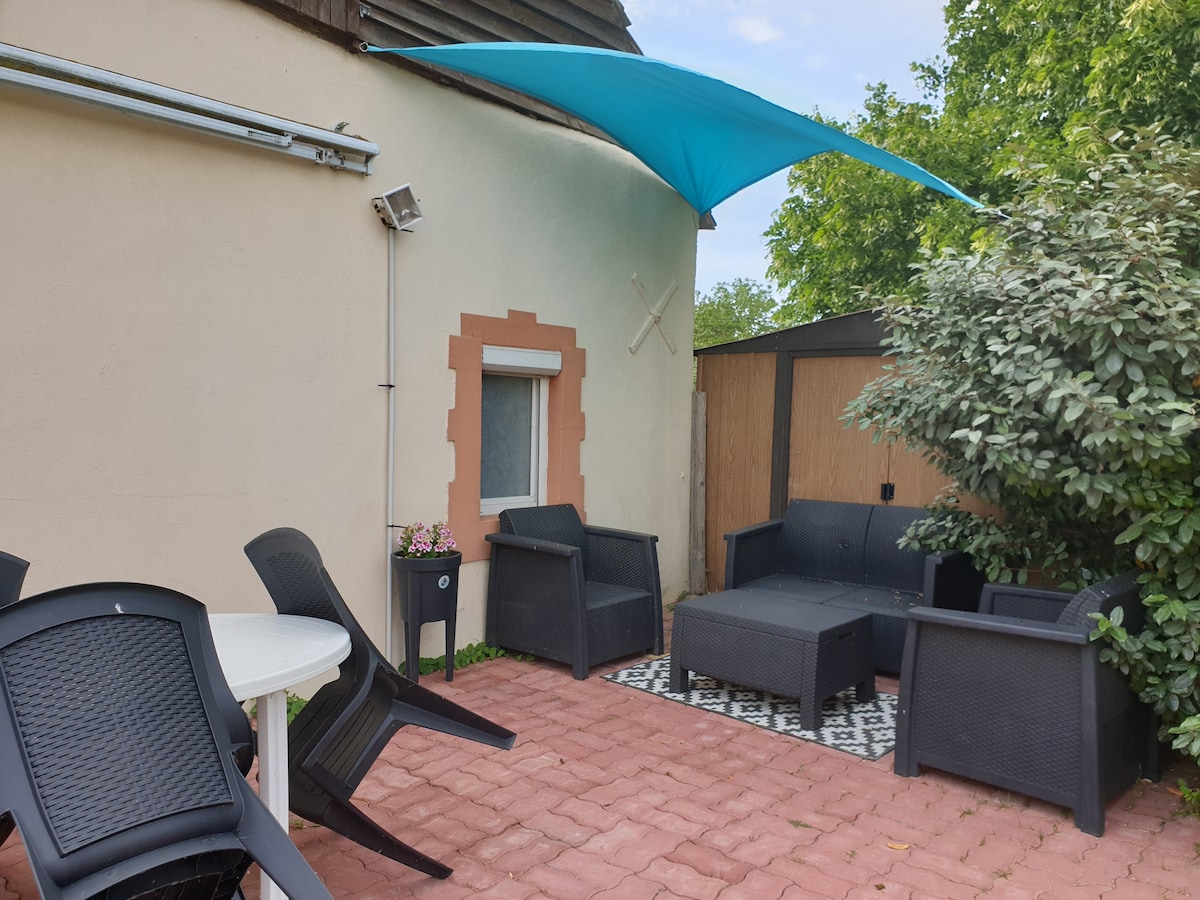 Studio indépendant entièrement rénové attenant à une belle maison dans un écrin de verdure de 4200 m aux portes du mans (8 minutes du centre ville) ! un petit coin de paradis près de la ville. Bus desservant le mans à 800 m. chemins de randonnées ( boulevard nature ) à 100m. Proximité circuit du mans, pôle européen du cheval, et golf de Sargé les le Mans. Nous précisons que les draps et serviettes de bain sont fournies.