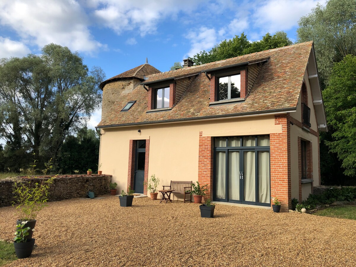 Gîte de charme situé dans la cour des communs de notre propriété familiale, sans vis à vis,vous bénificiez d'une belle vue sur les prairies du haras. à 5 mn du pôle européen du cheval à 15 mn du circuit des 24h du Mans et de son musée. Pour un séjour détente à la campagne ,idéal pour les familles et des week-ends entre amis.