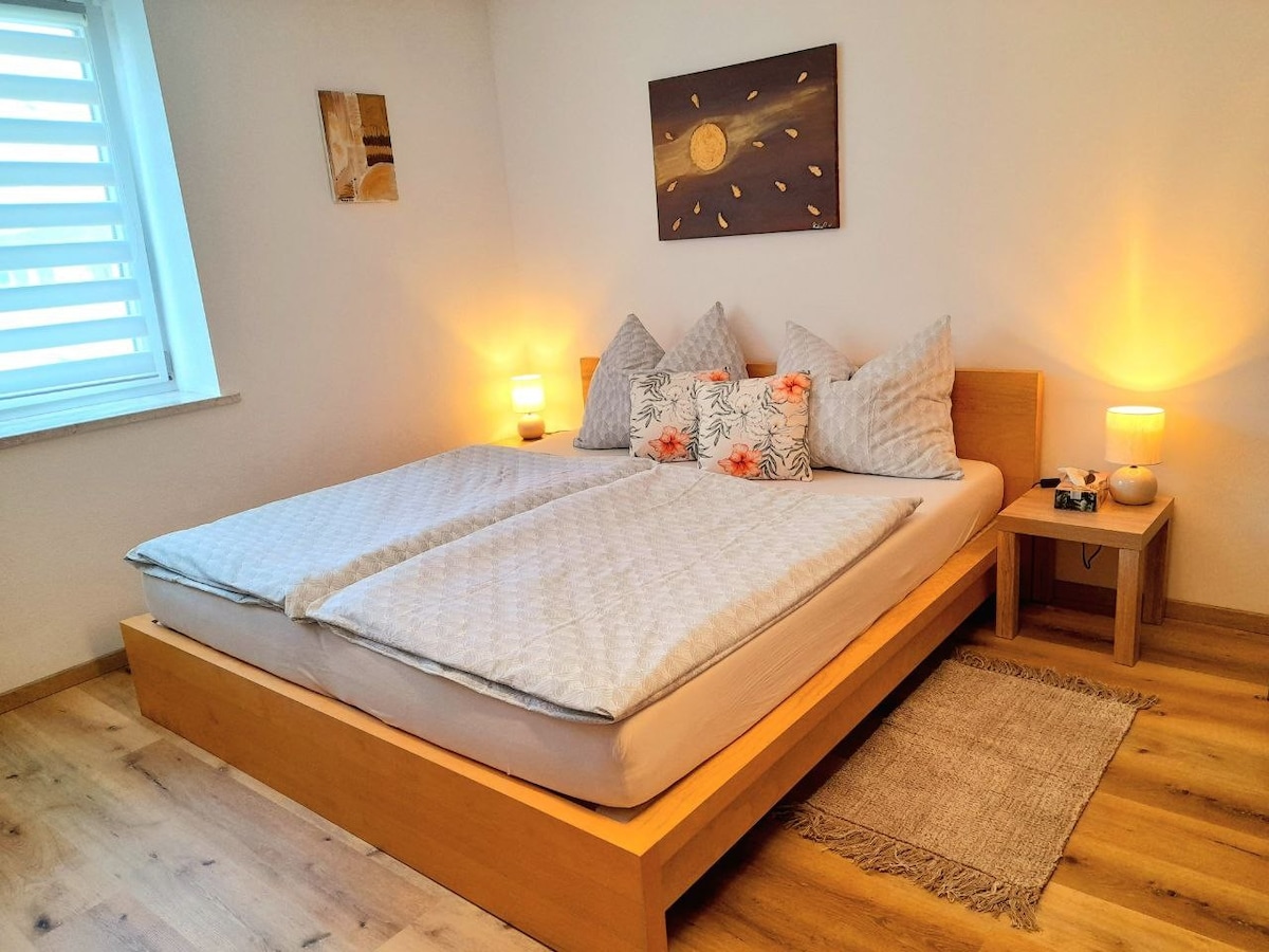 최대 4명의 게스트를 수용할 수 있는 햇살 가득한 시골 아파트에서 평화와 자연을 즐겨보세요. 바트 퓌싱과 고속도로가 몇 분 거리에 있습니다. ✅ 완비된 전용 아파트(수건, 침구 포함) ✅ 무료 와이파이, 커피, 차 ☕️ ✅ 스마트 TV(넷플릭스, 프라임 및 Co) ✅ 무료 주차 및 자전거 주차 요청 시✅ 무료 아기 침대 ✅ 애완동물 동반 가능 아파트에는 필요한 모든 것이 갖춰져 있으며, 거실에는 더블 침대와 더블 침대가 있는 침실 1개가 있습니다. 그럼 곧 뵙겠습니다😊