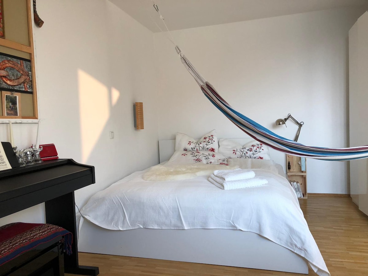 19์ธ๊ธฐ ๋ฌธํ์ฌ ๊ฑด๋ฌผ. ์๋ฆ๋ต๊ฒ ๊ฐ๊ตฌ๊ฐ ๋ฐฐ์น๋๊ณ ๋ฐ์ ์ ์ฉ ์ํํธ๋ก 1~2๋ช ์ด ๋จธ๋ฌผ ์ ์์ต๋๋ค. ๋ฎํจ์ ์ฅ์๊ณผ ๋ฐค๋๋ฌด๊ฐ ๋ด๋ ค๋ค๋ณด์ด๋ ์กฐ์ฉํ ๊ณจ๋ชฉ์ ์์นํ ์ต๊ณ ์ ์์น์ ์์ต๋๋ค. ์งํ์ฒ ์ญ๊ณผ ๋ฒ์ค ์ ๋ฅ์ฅ(U-Bhf. Schwanthalerhรถhe)๊น์ง ๋๋ณด๋ก 2๋ถ ๊ฑฐ๋ฆฌ์ ๋๋ค. ๋จ ๋ ๊ฐ์ ์งํ์ฒ ์ญ - 3๋ถ - ์ฃผ์ ์ญ์์ ๊ฐ๊น์ด ๊ฑฐ๋ฆฌ. ๋๋ฌด ๋ฐ๋ฅ๊ณผ ๊ฐ๊ตฌ. ๊ฐ์ด ์ฃผ๋ฐฉ ์์ค ์๋น. ์ธํฐ๋ท์ด ์ฐ๊ฒฐ๋ ๋ํ 40์ธ์น ์ค๋งํธ HD TV. ์ด๊ณ ์ WLAN. ๋ชจํ์ด๋ฅผ ๋๋ฉด ๋ฐ๋ก ์ธ๋ จ๋ ์นดํ๊ฐ ์์ต๋๋ค. ์ธํ๊ธฐ.