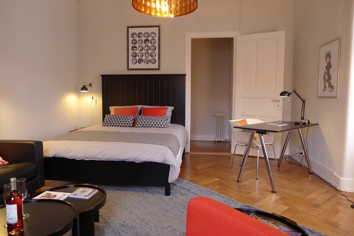 이 세련된 스튜디오는 절대적으로 새롭고 신선합니다. 그리고 여러분을 기다리고 있습니다;) 훌륭한 위치로 제네바를 충분히 즐길 수 있는 기회를 드립니다. ✓ 분수 제트도는 도보로 8분 거리에 있습니다. ✓ 상점가는 도보 10분 거리에 있습니다. ✓ 레스토랑, 바는 3~5분 거리에 있습니다. 역사적이고 푸르른 공원인 파크 라 그랑에서✓ 3분 거리. ✓ 스튜디오는 조용한 거리에 위치해 있으며 전용 마당이 있습니다. 제네바 외-비브 기차역에서 도보✓ 2분 거리에 있습니다. 또한 기차, 트램, 버스, 보트를 쉽게 이용할 수 있습니다.