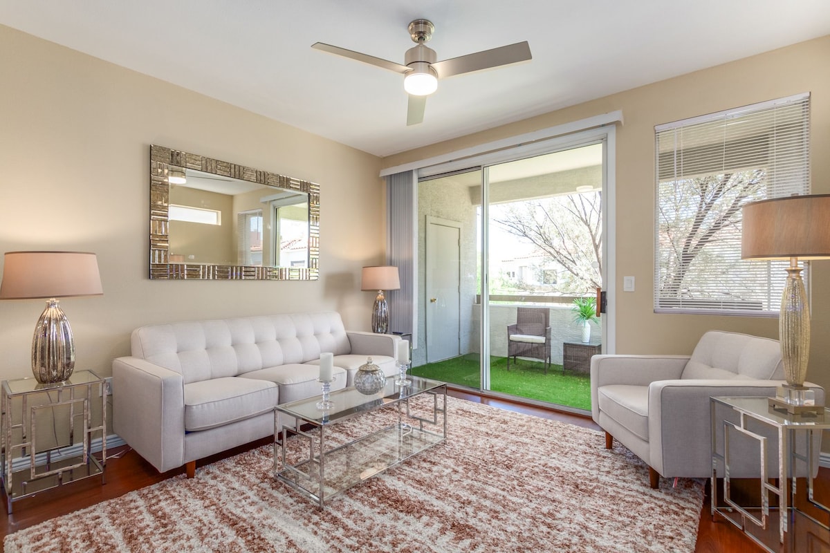 노스 스코츠데일의 매력적인 동네에 위치한 1층의 세련된 콘도에 오신 것을 환영합니다! 이 공간은 남서부의 매력과 현대적인 업데이트를 조화롭게 혼합했습니다. 골프 코스, 최고의 하이킹 트레일, 빠른 고속도로 접근성이 몇 분 거리에 있습니다. 온수 수영장, 자쿠지, 헬스장 옆에 있습니다. 지붕이 있는 주차장이 바로 문 앞에 있습니다. 식료품점, 상점, 레스토랑, 공원, 피클볼 코트까지 도보로 이동할 수 있습니다. 또한, 메이요 클리닉과 웨스트월드에 쉽게 접근할 수 있습니다! 세심한 호스트가 언제든지 도와드릴 준비가 되어 있습니다.