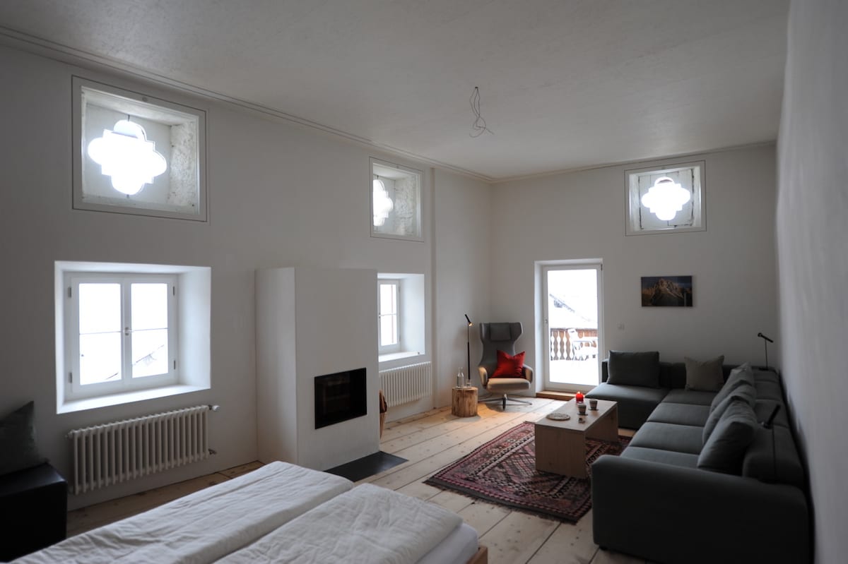 ์ ์ ์ข์๊ณผ ๋ฉ์ง ์ ๋ง์ ๊ฐ์ถ ํ๋์ ์ธ ์ํํธ. ์ค์ฟจ์ ์ค์ฌ๋ถ์ ์์นํ๊ณ ์์ผ๋ฉฐ, ์ง ๋ฐ๋ก ์์ ๋ฒ์ค ์ ๋ฅ์ฅ์ด ์์ต๋๋ค. ์ฐจ๊ณ , ์ํํธ๊น์ง ์๋ฆฌ๋ฒ ์ดํฐ. Bogn-Engiadina ํ๊ธ ์ถ๋ฉ๊ธฐ ๋ฐ ํธํ ๋ฒจ๋ฒ ๋ฐ๋ ๋ก ์ด์ด์ง๋ ๋ด๋ถ ์ง์ ์ถ์ ๊ตฌ. ์๋ํ ์ธํ ๋ฆฌ์ด, ํฐ ์ฐฝ๋ฌธ, ๋ฒฝ๋๋ก. ๊ฐ๋ฐฉํ, ์ต๊ณ ๊ธ ์ฃผ๋ฐฉ. ๋ณ๋์ ์นจ์ค 2๊ฐ. ์นจ์ค์๋ ์ด 5๊ฐ์ ์นจ๋๊ฐ ์๊ณ , ๊ฑฐ์ค์๋ 1๊ฐ์ ์ํ ๋ฒ ๋๊ฐ ์์ต๋๋ค. 1๊ฐ์ ํฐ ์์ค/์ค์์ค, 1๊ฐ์ ๋ณ๋์ ํ์ฅ์ค. TV/๋ผ๋์ค, WLAN. ์นจ๊ตฌ ๋ฐ ์๊ฑด ์ ๊ณต. ๋ฐ๋ ค๋๋ฌผ ๋๋ฐ ๋ถ๊ฐ. ๊ธ์ฐ ์ํํธ.