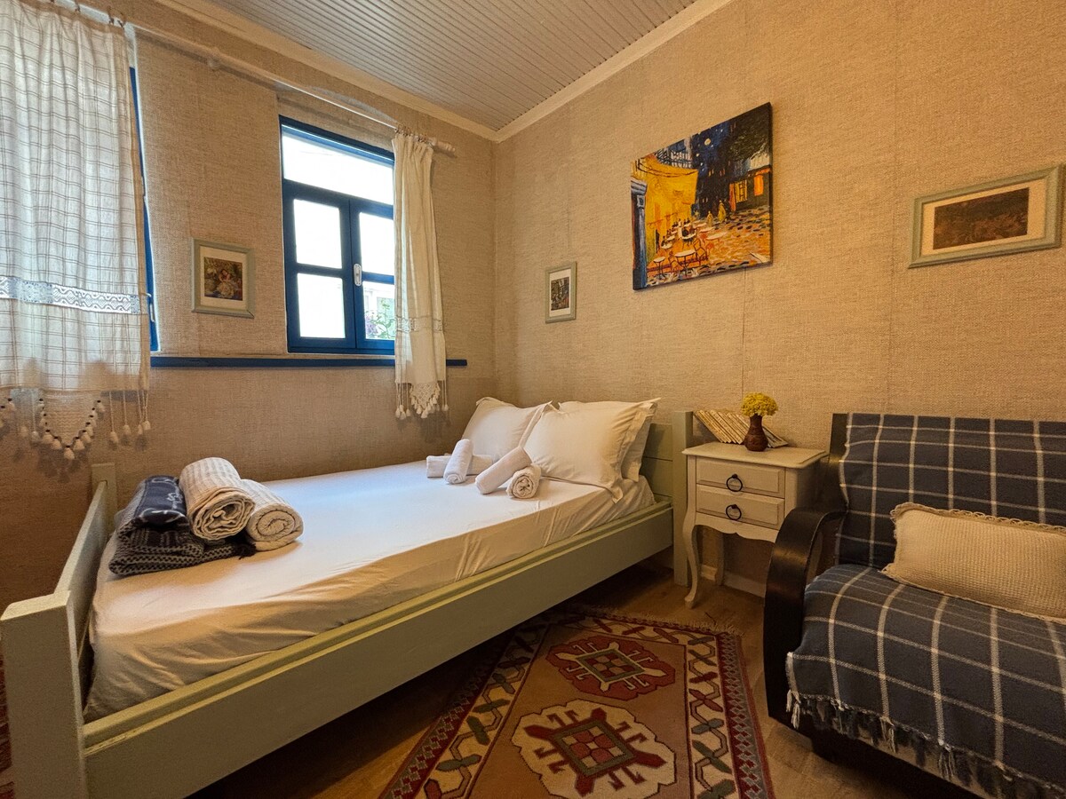 부티크 호텔의 이 객실에는 싱글 침대 2개가 있으며, 원하시면 커플을 위해 침대를 합칠 수 있습니다. 객실에는 전용 욕실과 화장실이 있습니다.