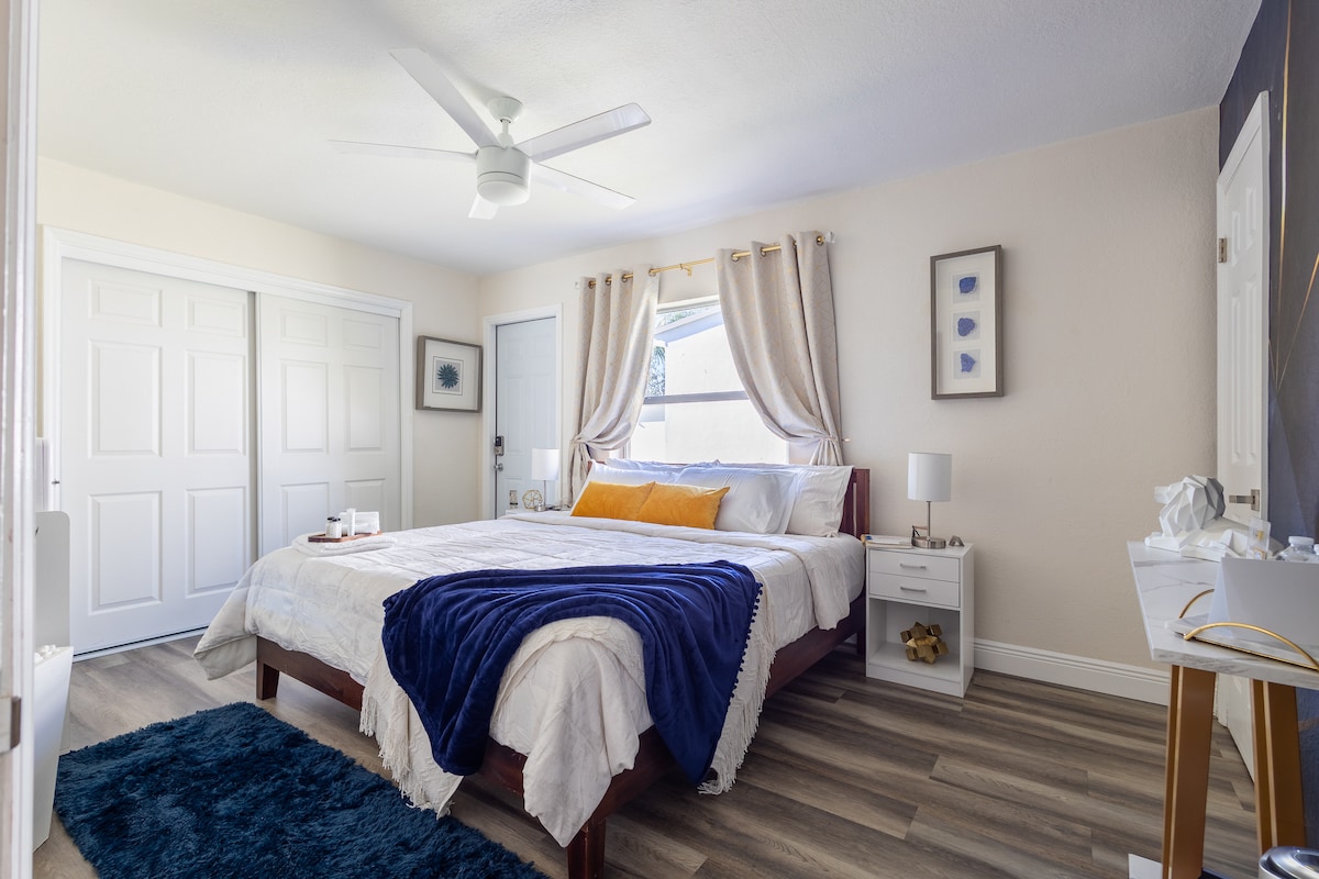 3 homes (200yds, 0.1 miles) from beach access! We are one of if not the closest home rental to the beach! Perfect for 2 couples - split floor plan with 2 queen beds (electric frames) with 2 full bathrooms + large 7 seater sectional. Every room has a 55-65in TV with Comcast, fast Wifi, HBOMax, Netflix, Hulu, AppleTV. Our house is close to everything! - Beach: 3 homes (on beach access rd) - Downtown: 0.3 miles away from restaurants/bars - Publix/CVS: 9 homes away