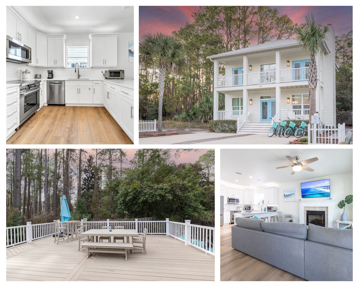 인기 있는 해변 30A 라이프스타일에 빠져보세요. 해변까지 몇 걸음 거리이며 해변 레스토랑과 카페까지 즐거운 산책이나 자전거 타기. ✯✰자전거, 10피트 패들보드, 부기 보드, 비치 파라솔, 의자 ✰✯ 30A에 ✔ 완벽하게 위치하고 있으며, 해변까지 몇 걸음 거리에 있습니다. 체크인 하루 전까지 취소 시✔ 전액 환불 가능합니다. ✔ 주방 ✔ 수영장 업무 공간이 있는✔ 빠른 와이파이 ✔ 편리한 열쇠 없는 출입 ✔ 60인치 스마트 TV ✔ 실내 전기 벽난로 ✔ LED 조명 해변까지 몇 분 거리