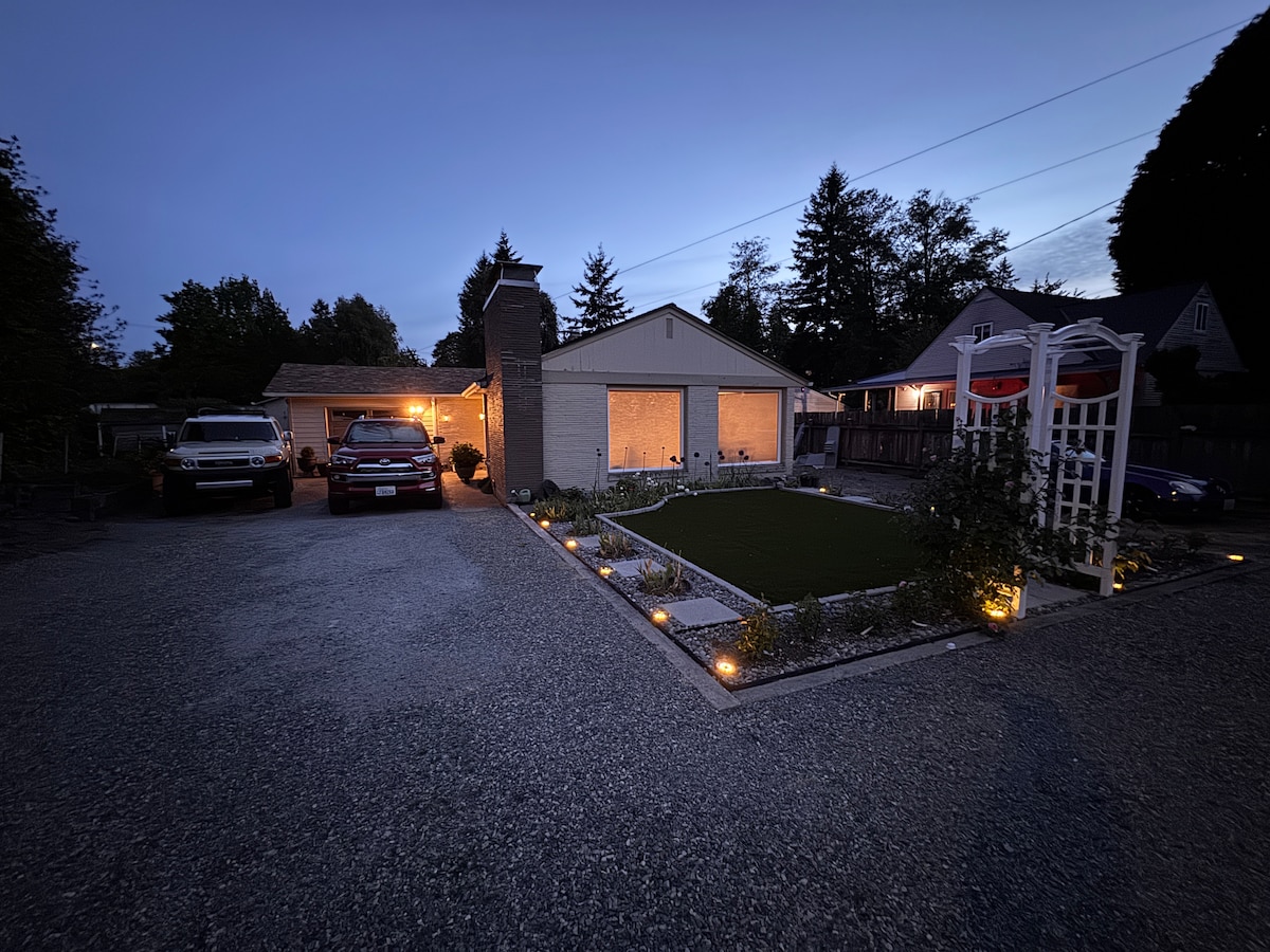 리모델링된 저희 게스트 코티지는 조용한 동네에 있는 편안한 안식처입니다. 이전에 저희의 별채 차고였던 이곳은 내 집처럼 완전히 독립된 숙소입니다. 전용 진입로 주차 공간과 시애틀 시내와 경기장까지 가는 래피드라이드 버스 노선과 가까운 거리에 있다는 점이 마음에 드실 거예요. 월드컵 방문객에게 안성맞춤입니다. 전용 파티오 출입구, 세탁기/건조기, 간이 주방, 대형 욕실을 갖춘 장기 숙박에 필요한 모든 것을 갖추고 있습니다. 부가 혜택: 차고는 태양 전지판을 사용하여 전력을 공급합니다.
