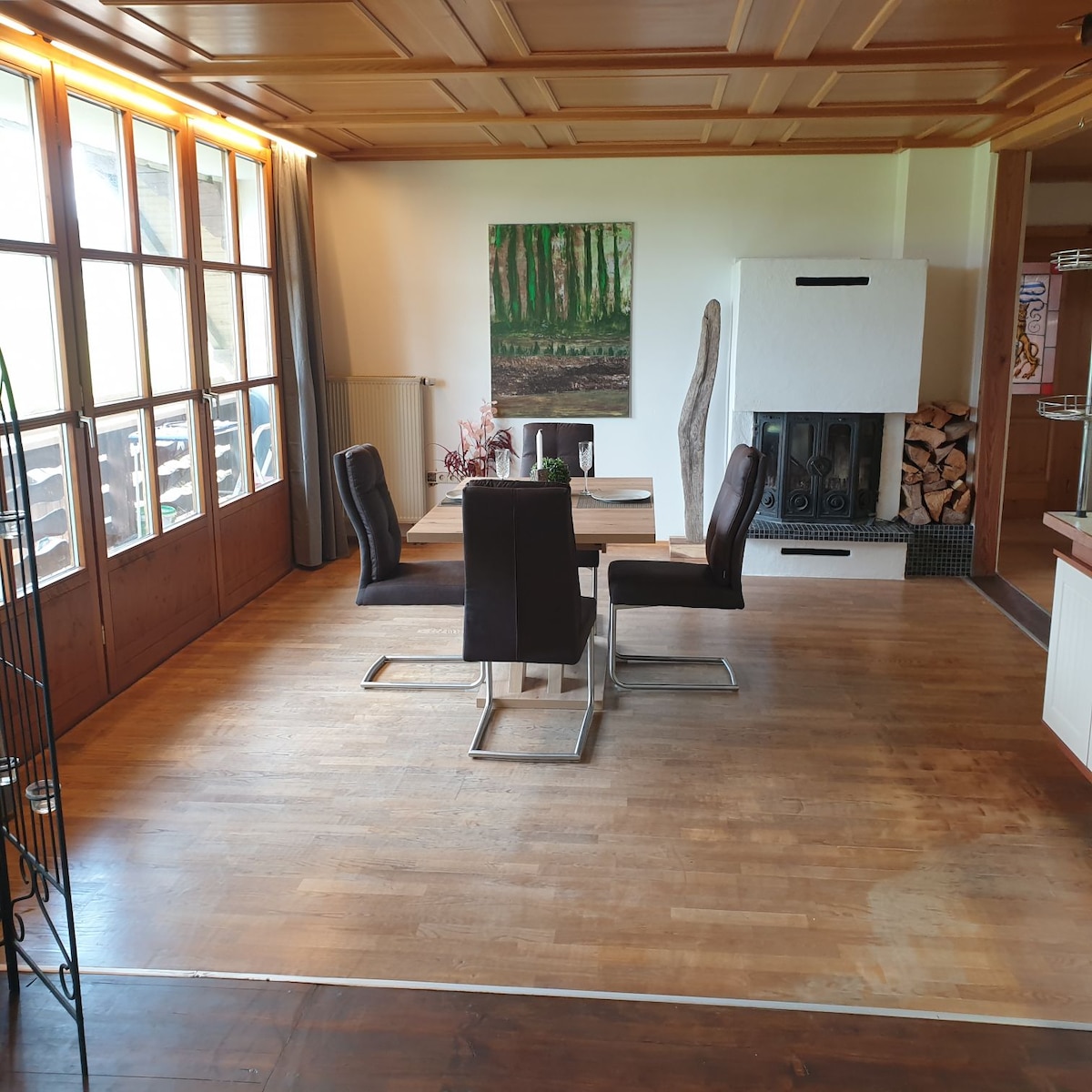 ์ด์ ๋์ฅ์ ์ฝ 120m ยฒ ์ ๋ชฉ๊ฐ์ ์ธ ๊ฑฐ์ค์ ๋จ๋ ์ผ๋ก ์ ๊ณตํฉ๋๋ค. ์๋ํ๊ณ ์ฌํํ ์นจ์ค 3๊ฐ, ์ฅ์ ๋๋ก๊ฐ ์๋ ์ค๋๋ ๋๊ฐ ์ฃผ๋ฐฉ, ํ์ผ ๋๋ก๊ฐ ์๋ ๋ ํนํ ๋๊ฐ, ์๋ํ ์๊ฐ์ผ๋ก ์ฌ๋ฌ๋ถ์ ์ด๋ํฉ๋๋ค. ์์ค์ ์๋ฐํ๊ฒ ๊พธ๋ฉฐ์ ธ ์์ผ๋ฉฐ ์๋ฆ๋ค์ด ๋๋ฌด ๋ฐ๋ฅ์ ๊ฐ์ถ๊ณ ์์ต๋๋ค. ์ ํฌ ์ง์์๋ ๊ณ ๊ธ์ค๋ฌ์์ ๊ธฐ๋ํ์ง ์์ง๋ง, ํ ๋จธ๋์ ๋์ฒ๋ผ ์๋ํ๊ณ ์ฌ๋์ค๋ฌ์ด ๋ถ์๊ธฐ์ ๋๋ค. ๋ก์์ง๋ง ๊ธ์ผ๋ก