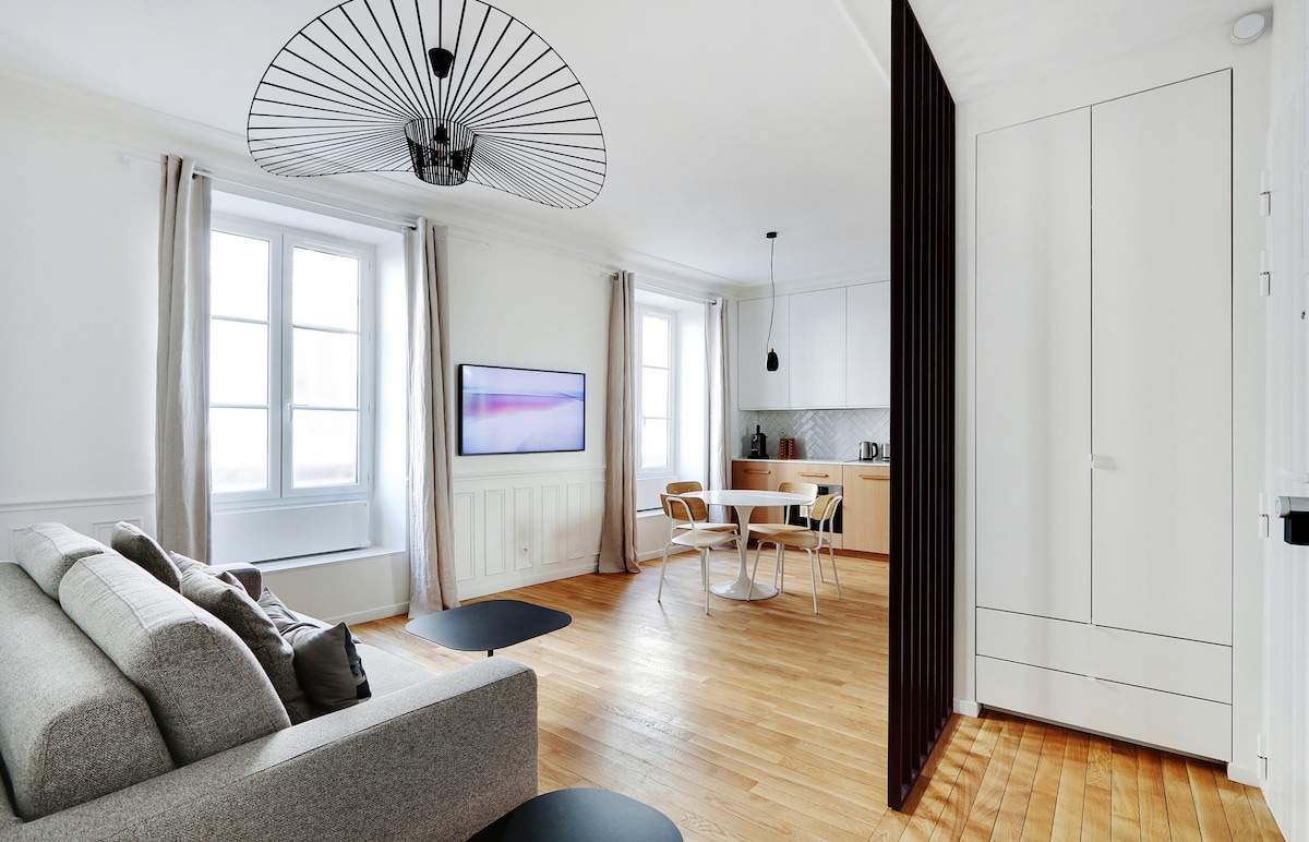Discover our new air-conditioned apartment ideally located in the heart of the capital, halfway between Rue Montorgueil, Place des Victoires, the Marais district, and the Beaubourg center. Right outside the apartment, you'll find local shops, typical Parisian restaurants and cafes, and all sorts of boutiques. This luxurious, bright, modern apartment, tastefully decorated by professionals, and fully equipped, is ideal for a successful stay in the capital with family or friends.