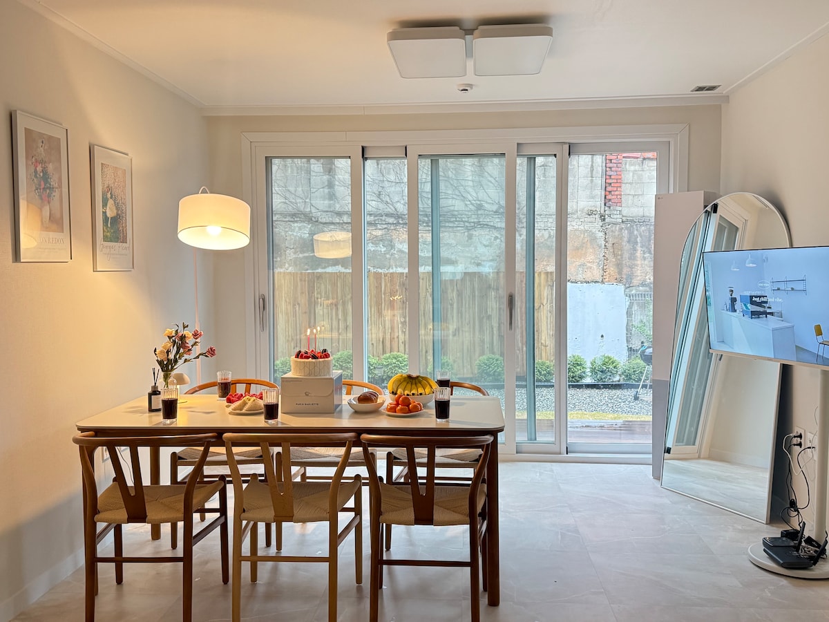 [최대14인]도심속 힐링 / 휘게 스테이/단독주택/바베큐/불멍 화로/봉안리 정거장/호텔침구