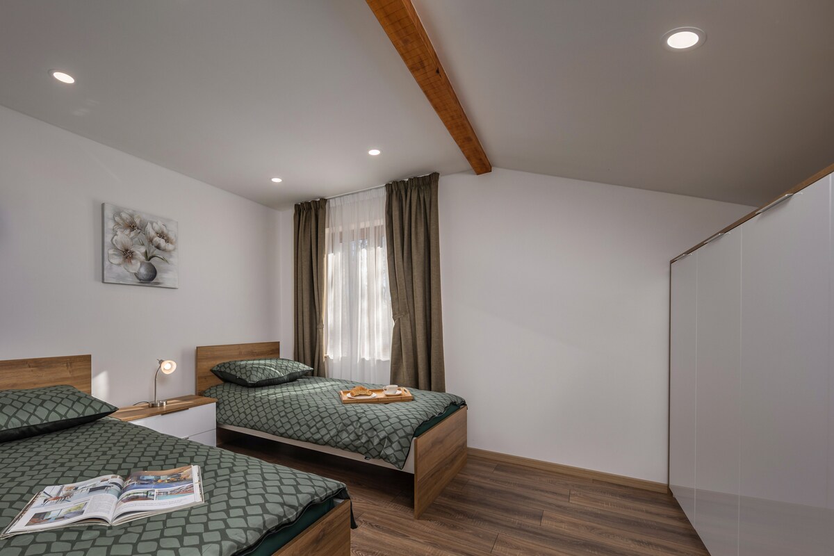 슬라티나 해변과 상징적인 룽고마레에서 몇 걸음 거리에 있는 오파티야의 옥상 테라스 2 베드룸 로프트. 새롭게 리모델링된 이 휴양지는 미니멀리즘 디자인과 럭셔리를 조화롭게 결합하여 넓은 침실 2개(각각 전용 욕실, 퀸사이즈 침대 및 옷장), 세련된 현대식 주방, 개방형 거실 공간, 멋진 옥상 테라스를 제공합니다. 휴식과 탐험에 완벽한 곳!