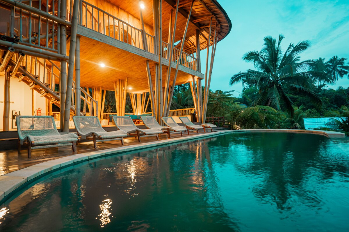 Green Oasis Retreat Bali in Selemadeg offers spacious rooms with air-conditioning, private bathrooms, and balconies. Each room includes a tea and coffee maker, hairdryer, and river views. Guests can relax in the garden, on the terrace, or by the outdoor swimming pool. The property features a dining area, dining table, and a balcony for outdoor dining. The bed and breakfast provides a paid airport shuttle service and car hire. Free on-site private parking is available.