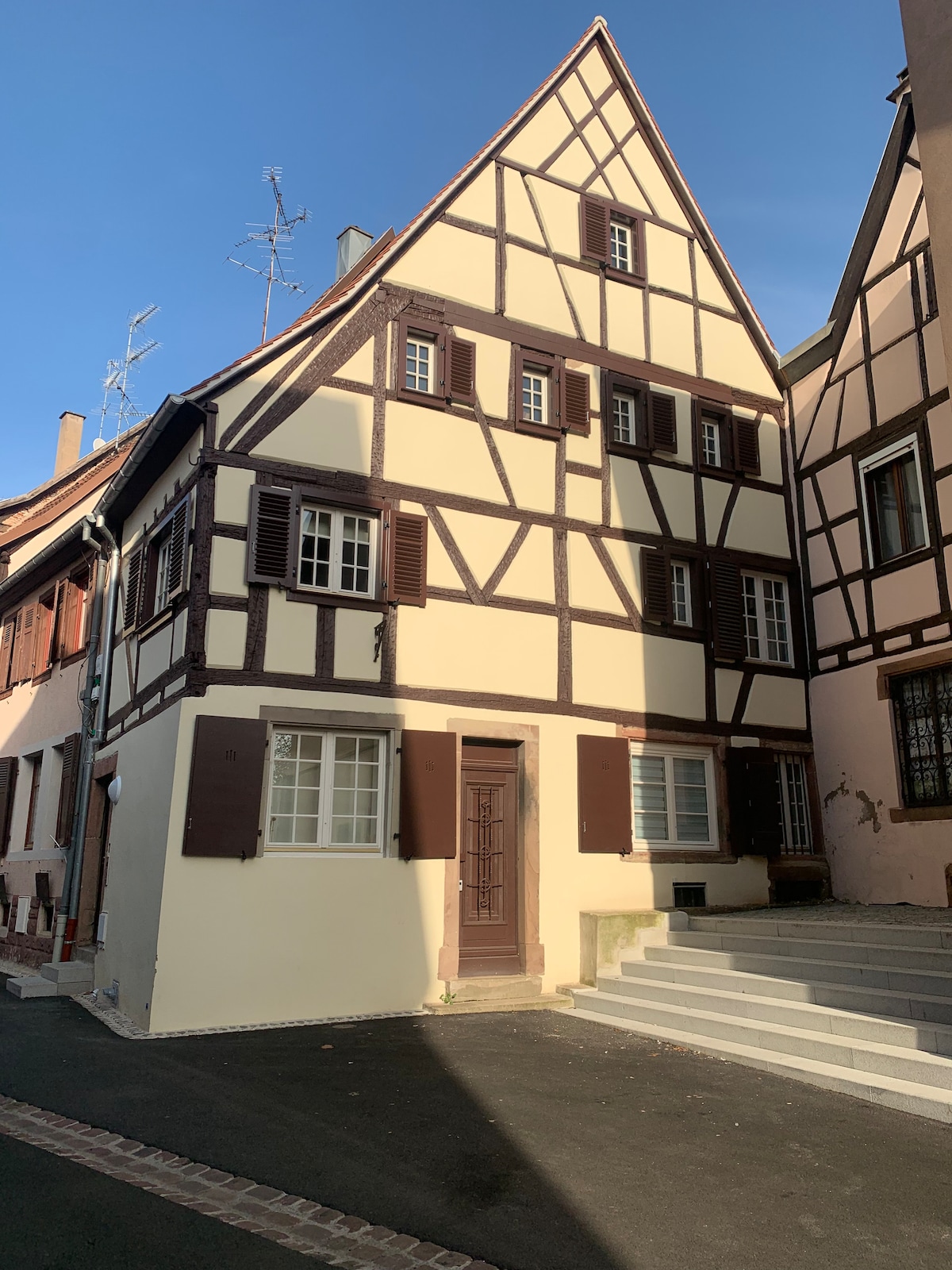셰르빌레르 와인 마을의 알자스 와인 🥨도로에 위치한 이 매력적인 🍇숙소는 알자스 중심부에 이상적으로 위치하고 있습니다. 스트라스부르와 콜마르는 약 35분, 유로파 파크는 45분 거리에 있습니다🎡. 셀레스타는 10분 거리에 있습니다. 근처에 무료 주차장이 있습니다. 광섬유와 TV 프로그램을 이용하실 수 있습니다. 아름다운 알자스를 (다시) 발견할 수 있게 해드리겠습니다! 곧 뵙겠습니다! 콰띠앙