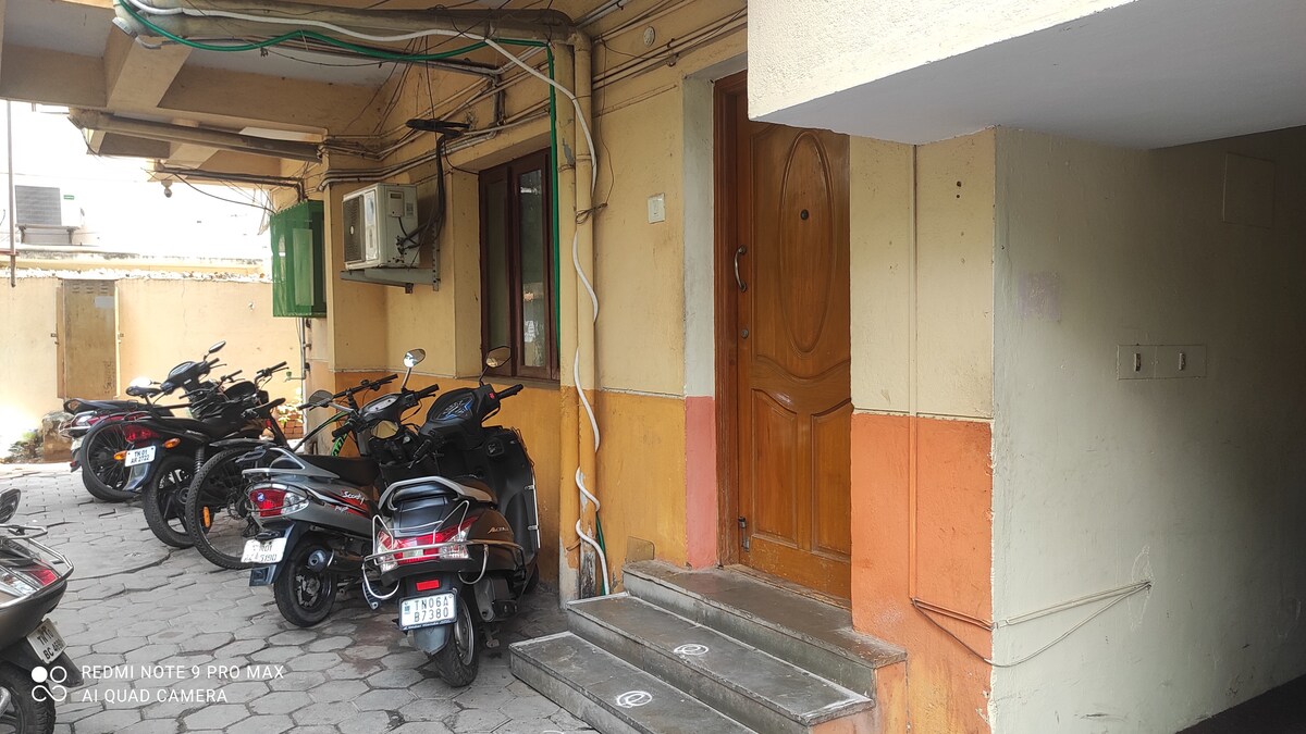 Situated on the third floor of an old residential building, the space features a furnished en-suite bedroom and balcony, and a dining room. No kitchen, but there is a refrigerator, microwave and kettle 25-30 minutes to the airport and railway station. 8 minute walk from Nandanam Metro Station. It is ideal for travellers seeking comfort and connectivity. It is accessible via elevator, and it has a shared entrance with a small office (please see the layout photo).