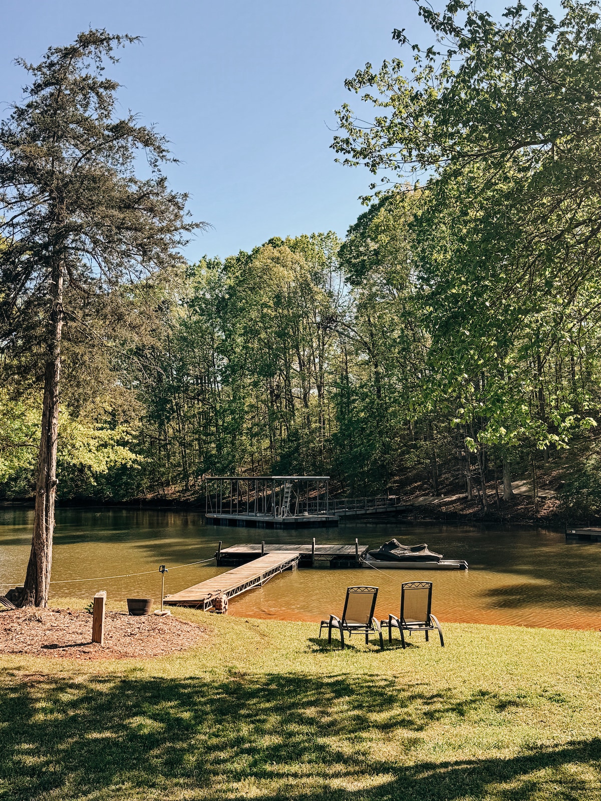 We excitedly invite you to come enjoy a one of a kind experience at our personal lakefront home. Originally designed and built in the 60s, this home now has all the modern necessities, yet still brims with endless midcentury charm. Located only 3 miles from Clemson, our large outdoor entertainment space and direct access to our private dock invite you to enjoy the many sights and sounds that the lake has to offer. Use our 2 kayaks and canoe, or use the dock to tie up your own boat!